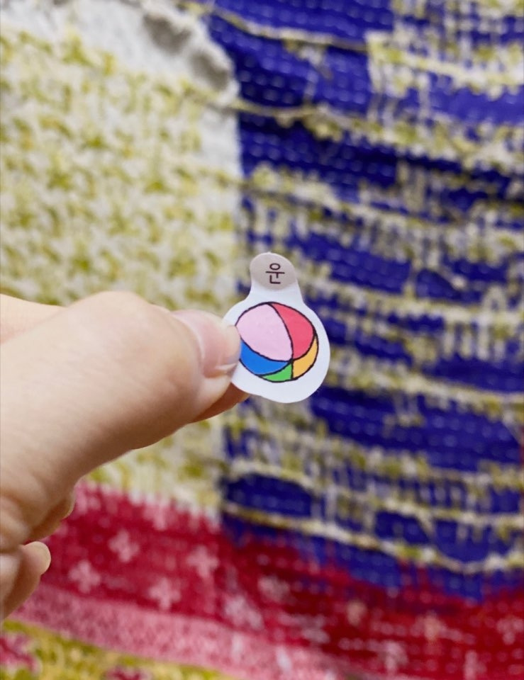 스티거는 "공"이라고 쓰인 것이었는데, 내가 뒤로 뒤집어서 떼어내다가 "운"이라고 본 것이다.