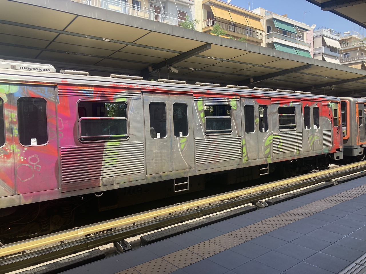 아테네 여행 첫날, 이러한 정보 없이 아테네를 여행했을 때에도 자연스럽게 뭔가 좀 이상하다는 느낌을 받았다. 도시 곳곳의 건물은 물론이고 관광지 근처에 손이 닿을 수 있는 모든 곳, 그리고 지하철까지 그래피티로 빼곡하게 덮여있었기 때문이다. 사실 그래피티라는 예술적인 용어를 쓰고 싶지도 않게, 낙서라고 표현하는 것조차 좋게 봐주는 것일 정도로 지저분한 스프레이칠이 덕지덕지 붙어있었다. 호주의 멜버른처럼 그래피티가 도시의 예술성의 표출인 것처럼 보이지 않고 아테네의 그래피티는 진짜 지저분하다는 느낌을 받게 했다.