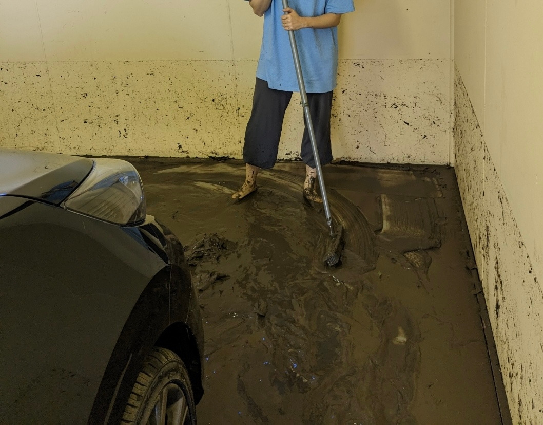 날씨가 오랜만에 좋으니 빨래를 해야지 하고 세탁기에 빨래를 돌리는데 밖이 심상치가 않았다. 사람들이 여기저기 바쁘게 움직이고 있었고 남편이 저쪽 길 멀리에 구급차도 보인다고 했다. 남편이 나가서 어떤 상황인지 보고 오겠다고 하고 한참이 지나도 돌아오지 않아서 대체 무슨 일인가 하고 나가보았다. 아비규환이 따로 없었다. 문 밖의 길이 온통 진흙투성이었고 길을 따라 쭉 따라 내려가면 있는 차고까지 진흙으로 덮여서 걷기가 힘들 정도였다. 사람들이 부산스럽게 길을 청소하고 있었다. 진흙으로 미끄덩 거리는 길을 헤치며 차고로 가보니 남편이 차고 문을 열려고 끙끙대고 있었고, 차고에 주차된 차에 물이 가득 들어차 있었다. 거의 자동적으로 집에 있던 빗자루를 들고 그때부터 길을 청소했던 것 같다. 다행히 5개의 집이 붙어있는 타운하우스에 살고 있어서 이웃 주민들과 주민들의 가족들까지 함께 청소하니 나름 수월하게 청소할 수 있었다. 하지만 수월하다고 했지 힘들지 않다고는 안 했다… 길에 물을 뿌려가면서 진흙을 긁어 내려가니 조금씩 맨땅이 보였다. 길을 어느 정도 닦고 나서 각 집의 차고를 하나씩 청소했다. 우리 집은 이사 온 지 얼마 되지 않아서 차고에 차 밖에 없었지만 여기서 오래 산 사람들은 차고 안에 많은 짐들이 있어서 꽤나 피해가 커 보였다.
