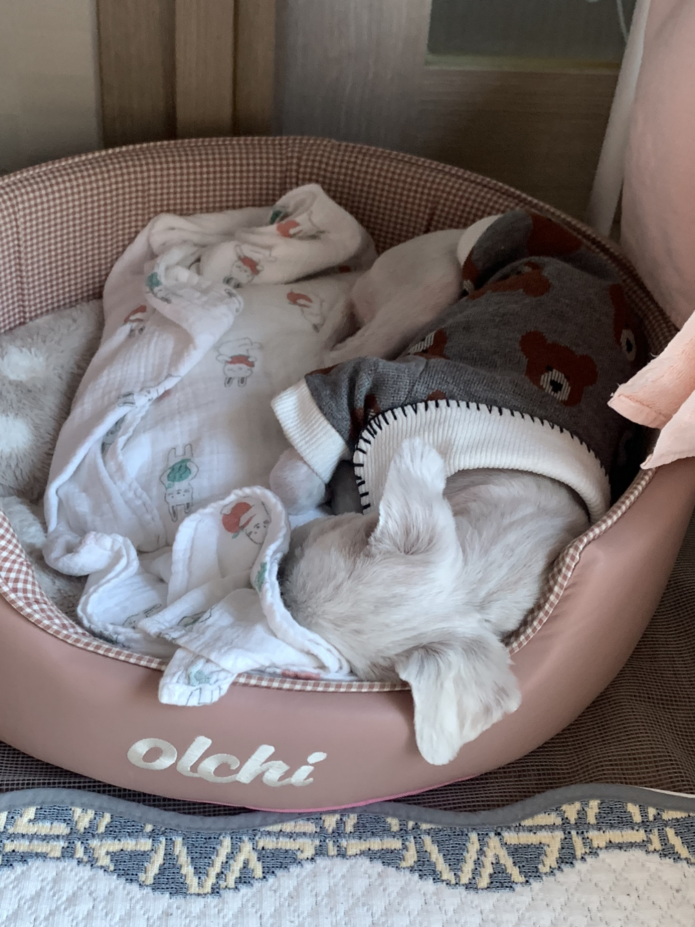 하지만 침대에 올려주면 밤새 히융히융 울며 불편해했다.