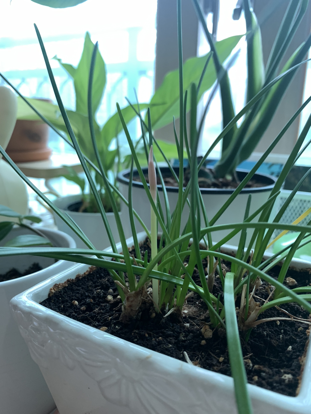 몇 개 안 되는 시든 부추줄기 같지만 한두 개씩 잎이 나오며 살고 있으니 구석에 두고 계속 물을 주었다.