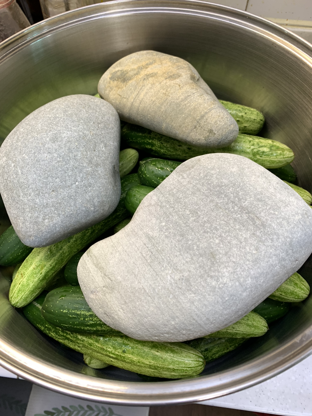 무거운 누름돌을 사용하면 좋지만 구할 수 없는 경우