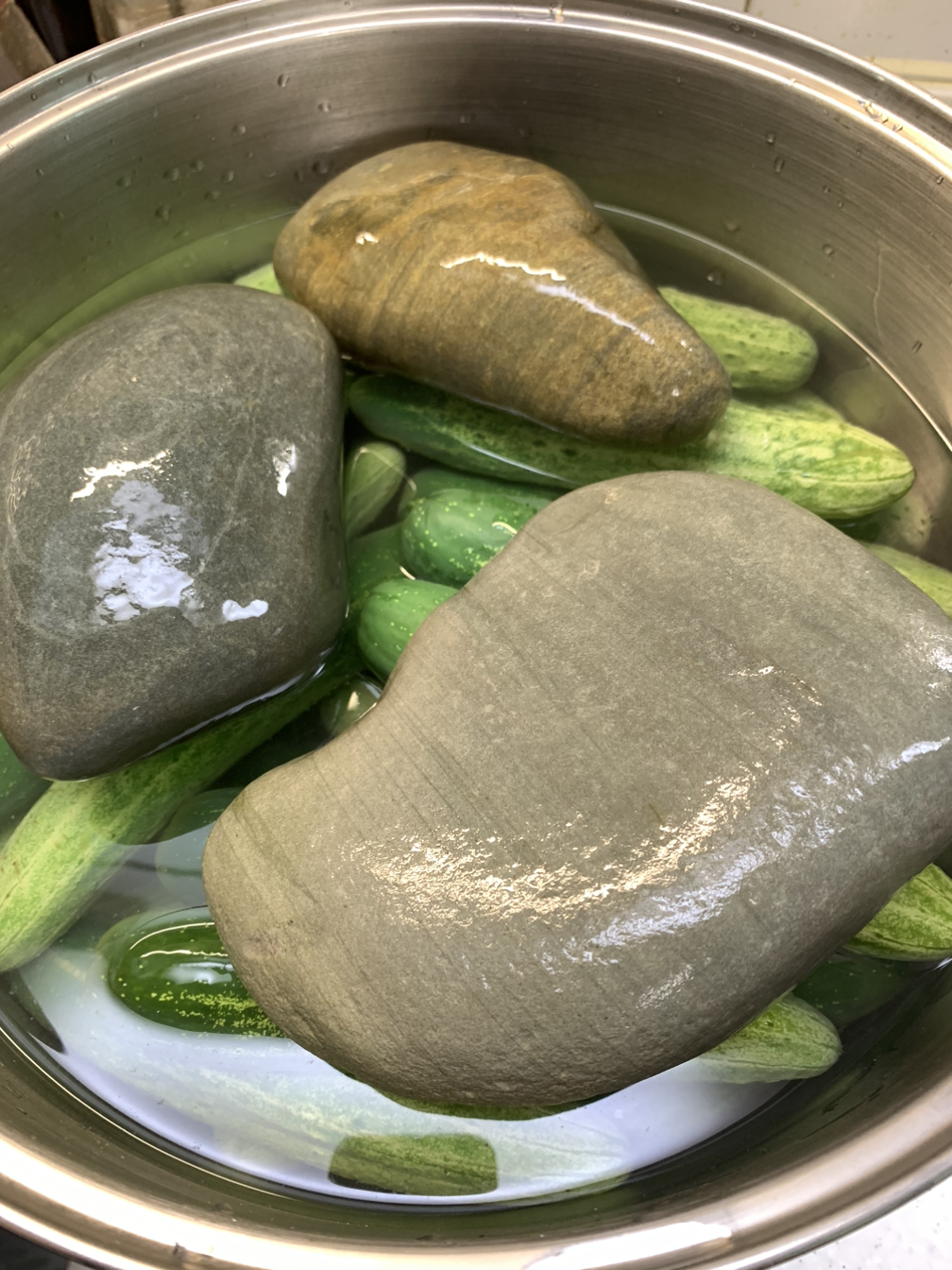 오이가 떠오르지 않게 눌러줘야 아작아작한 오이지가 되므로 아주 중요하다.