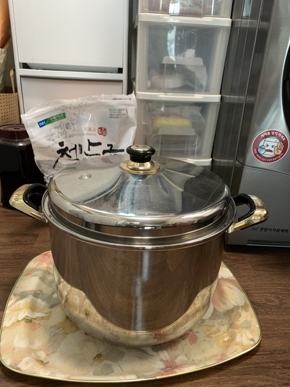 * 1차 저장용기는 소금물은 펄펄 끓는 것을 부어야 하므로 안전한 항아리, 스테인리스 밀폐용기 또는 냄비를 이용한다.