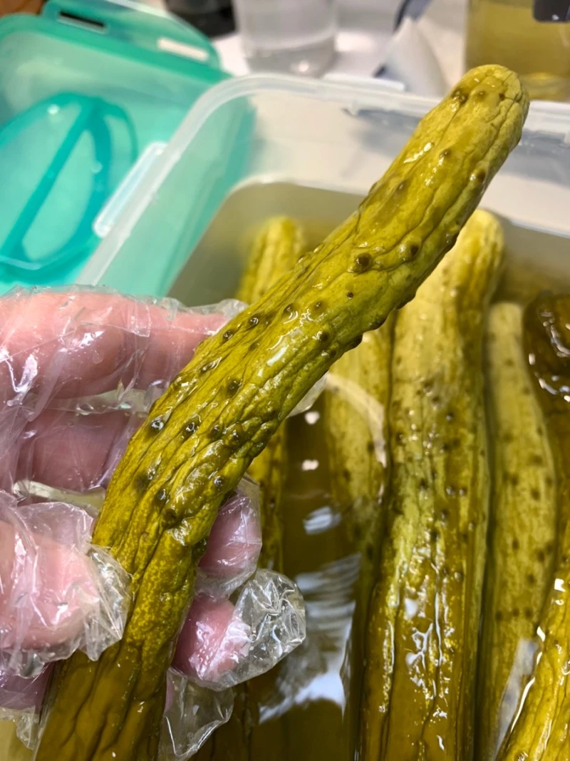1. 오이에 달려있는 꽃을 떼어내고, 오이 가시는 남아 있어도 된다. (절대 칼을 대지 않는다)