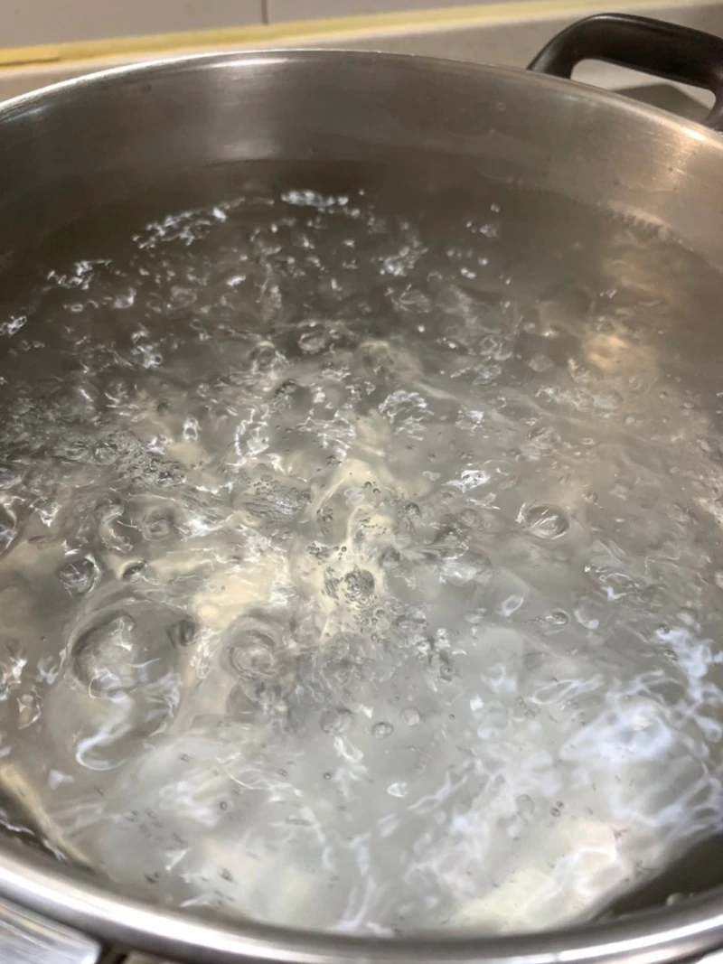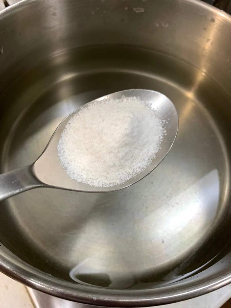 분량의 물과 소금을 넣어 잘 녹인 후 팔팔 끓여준다. (팔팔 끓기 시작하면 2~3분정도 더 끓인다)