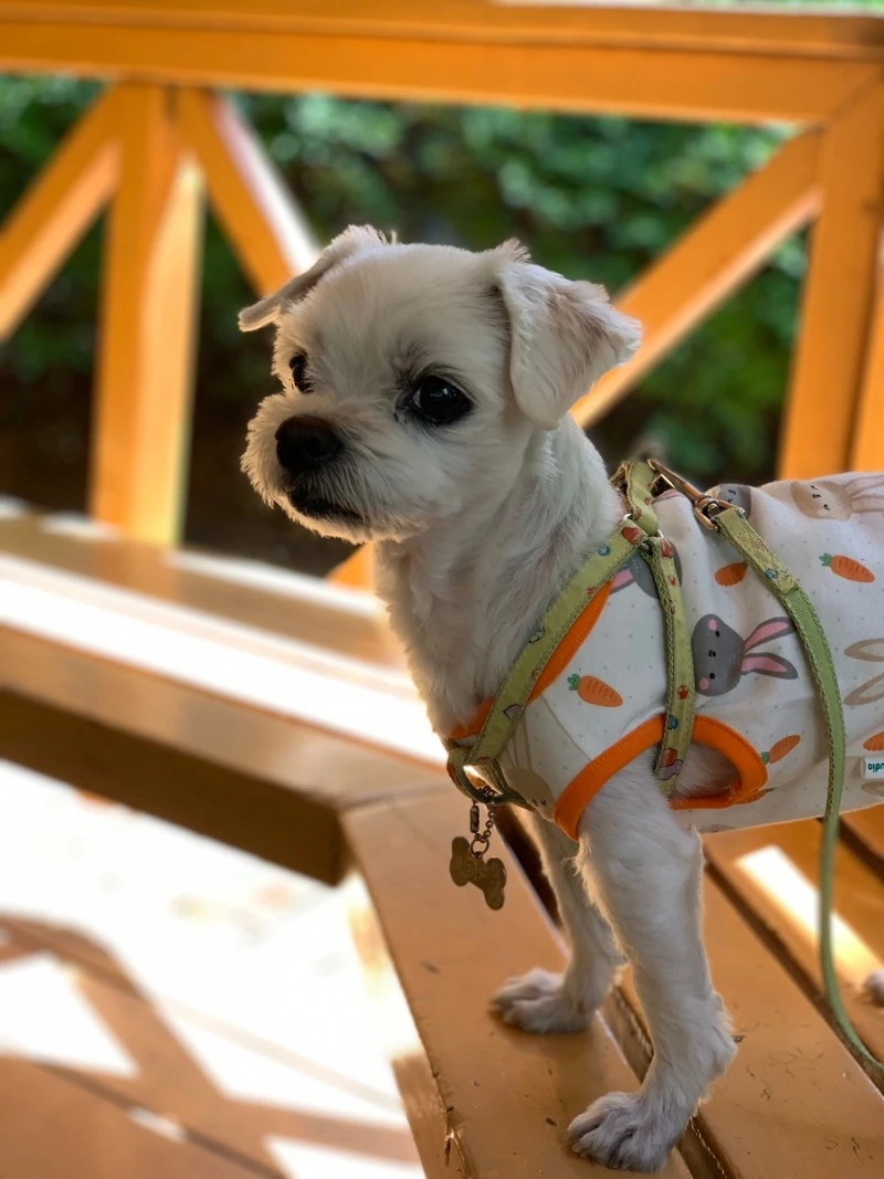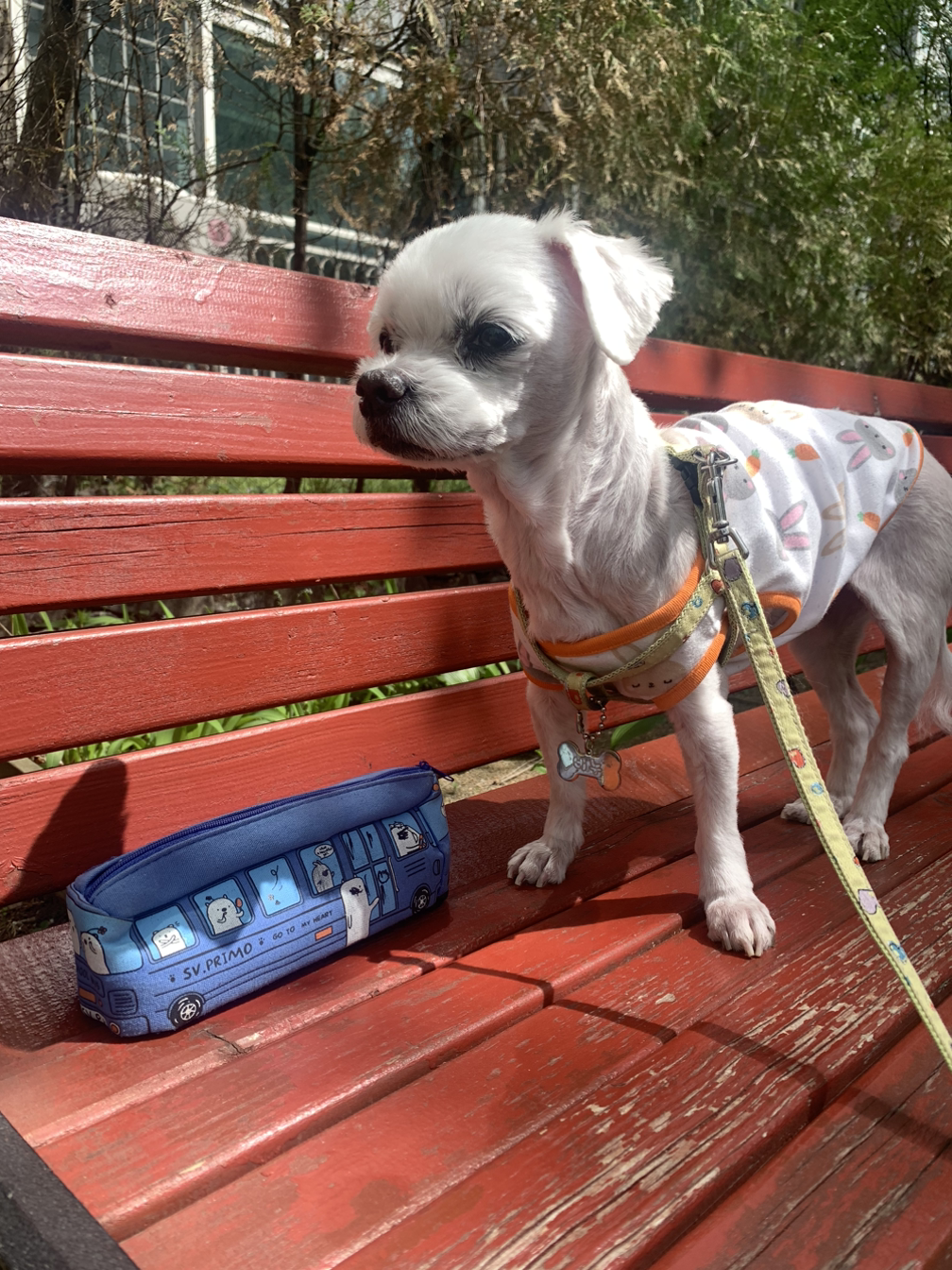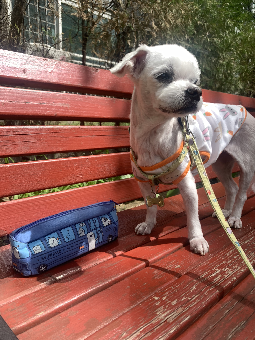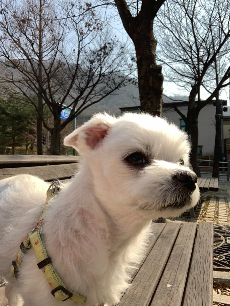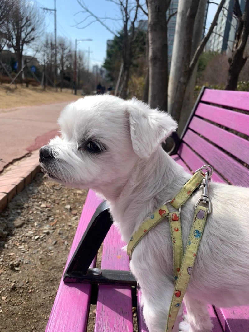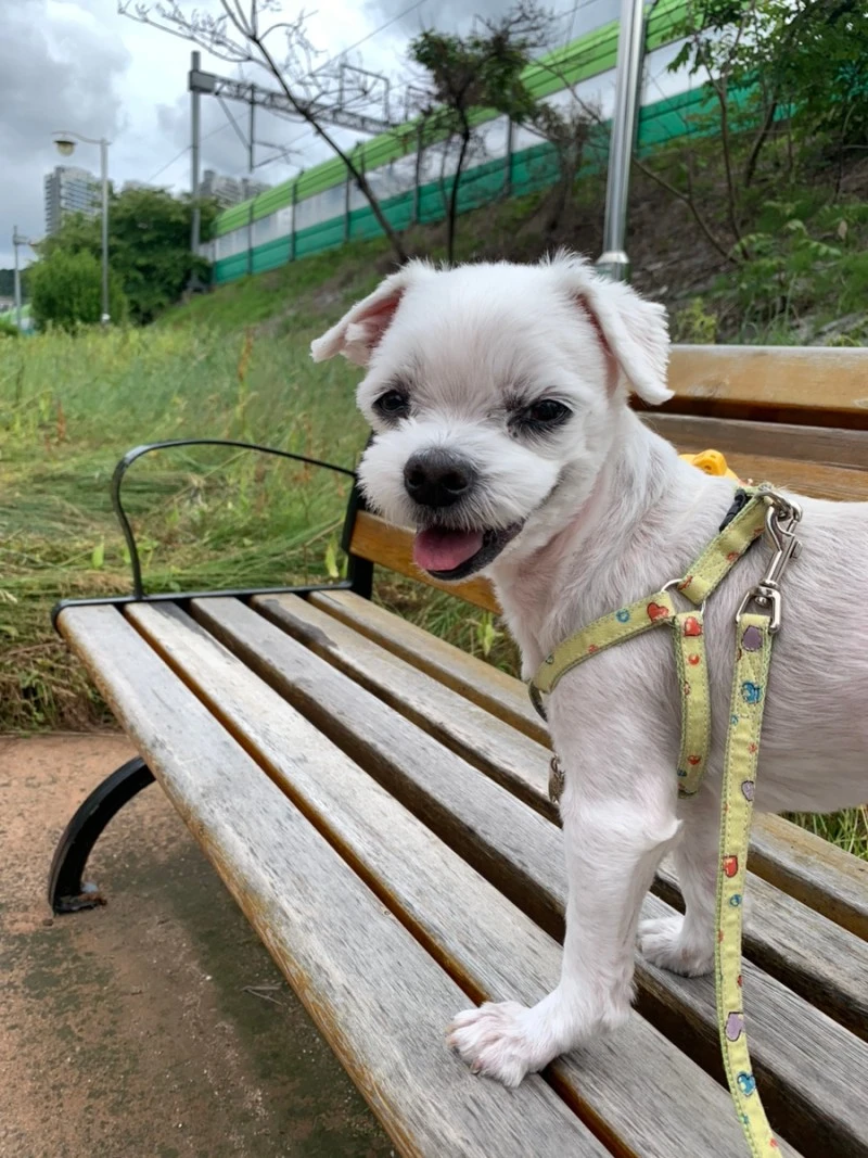 밖에서 절대 멈추지도, 앉지도 않던 비누가 이젠 벤치에 잘 앉아있는다.