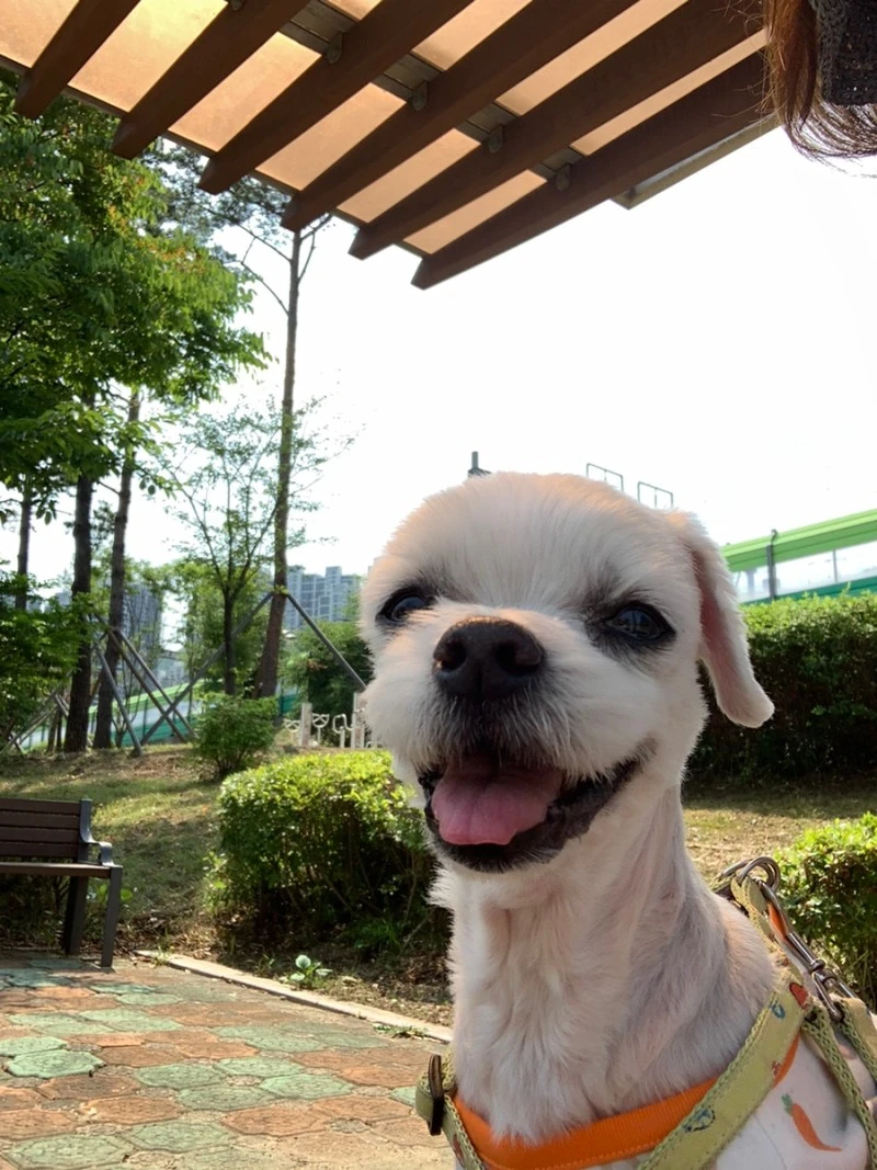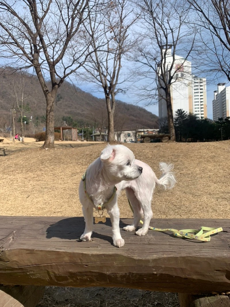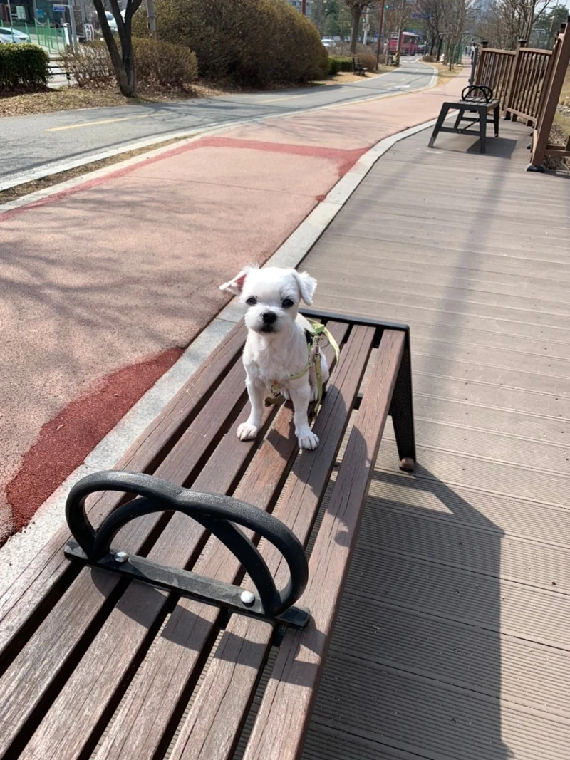 “비누야, 오늘은 벤치에 앉을까? 평상에 앉을까?”