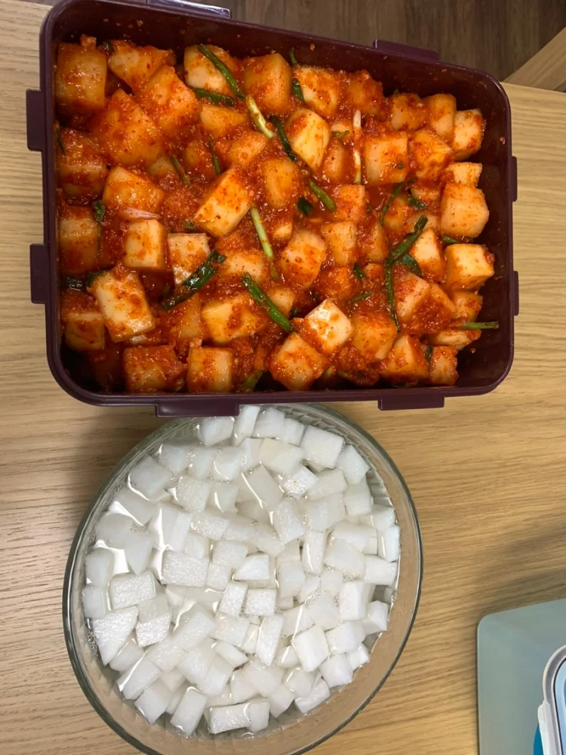 1시간에 깍두기와 치킨무 두 가지 먹거리를 만들고 나니 든든하다.