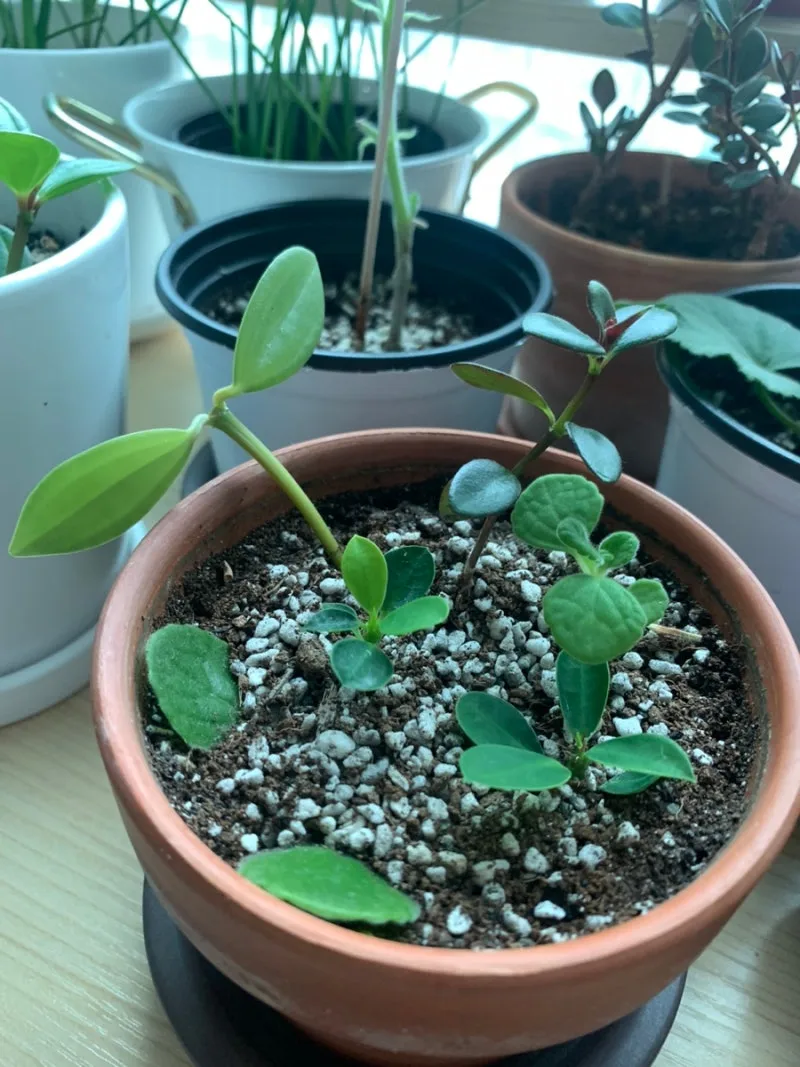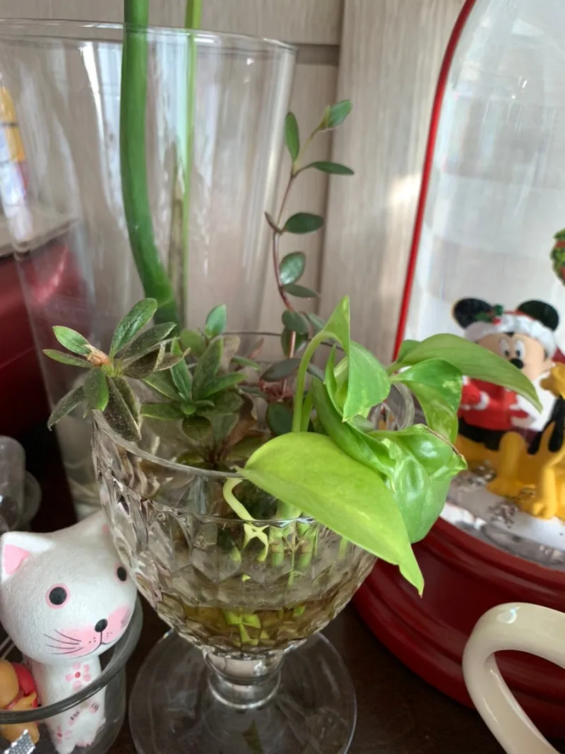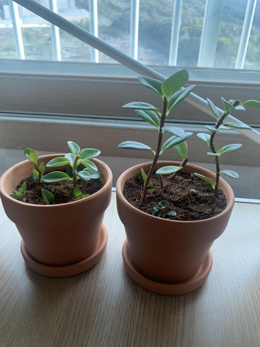 줄기를 물꽂이하여 뿌리가 충분히 나온뒤 흙에 심어줬다