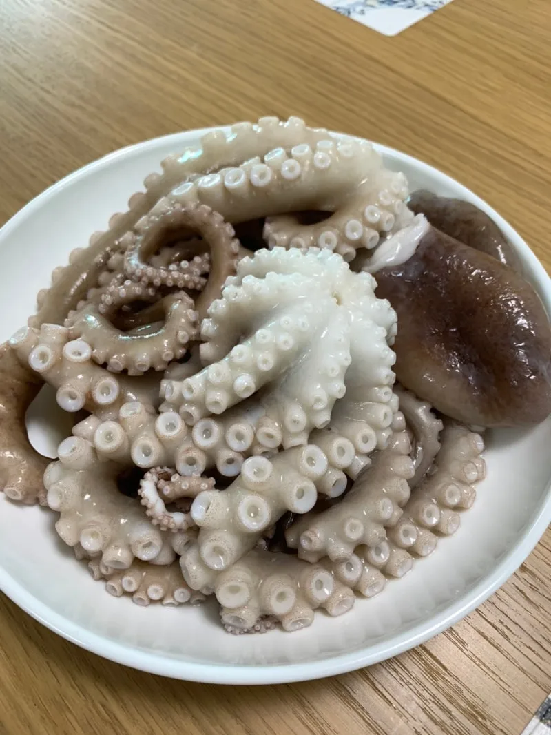 1, 낙지는 빨판에 뻘이 없도록 밀가루를 뿌려 깨끗이 씻어 살짝 데쳐둔다.