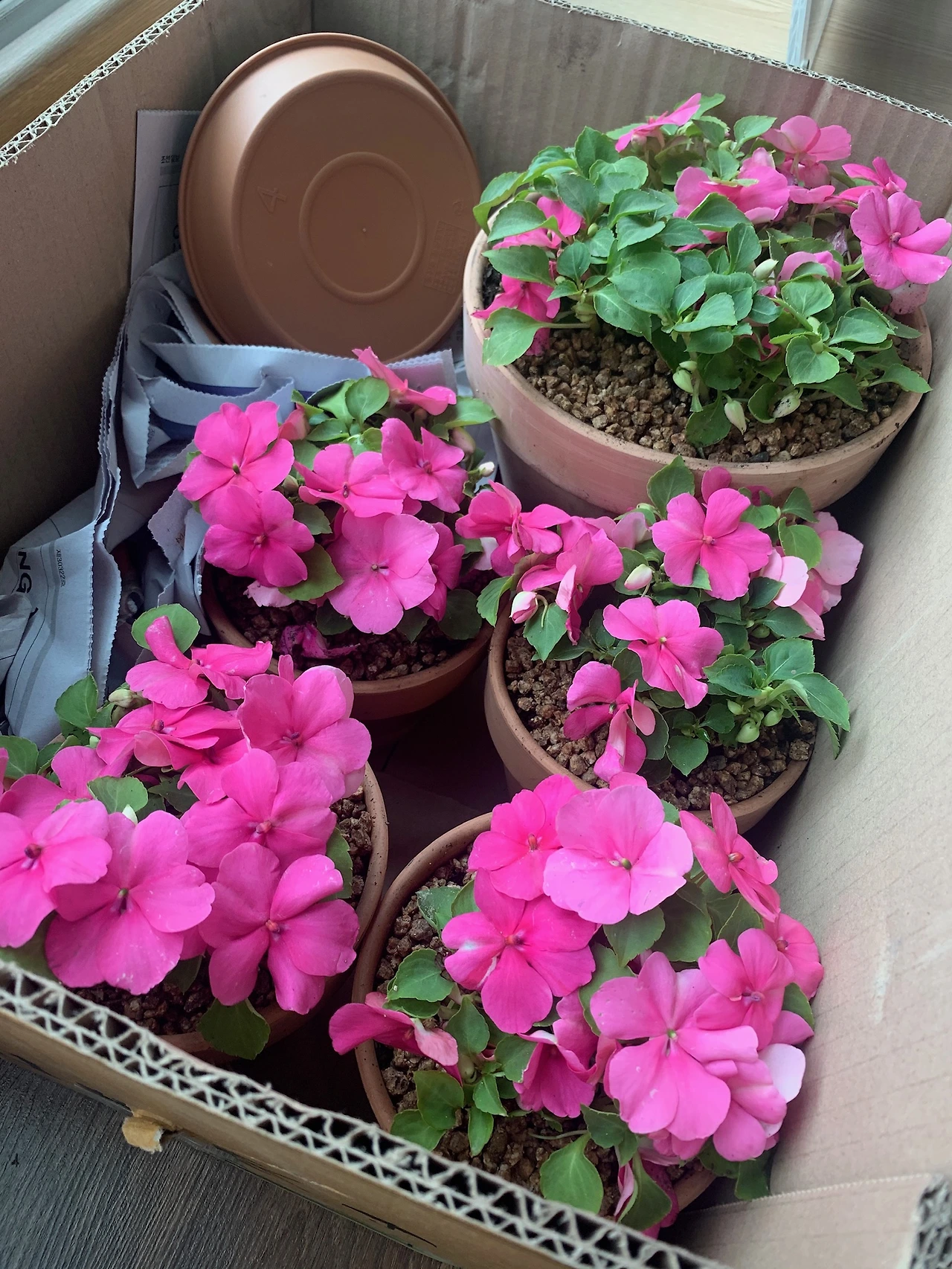 오랜 그리움 끝에 만난 임파첸스는 모종 한판을 사서 여기저기 나눔을 했다.