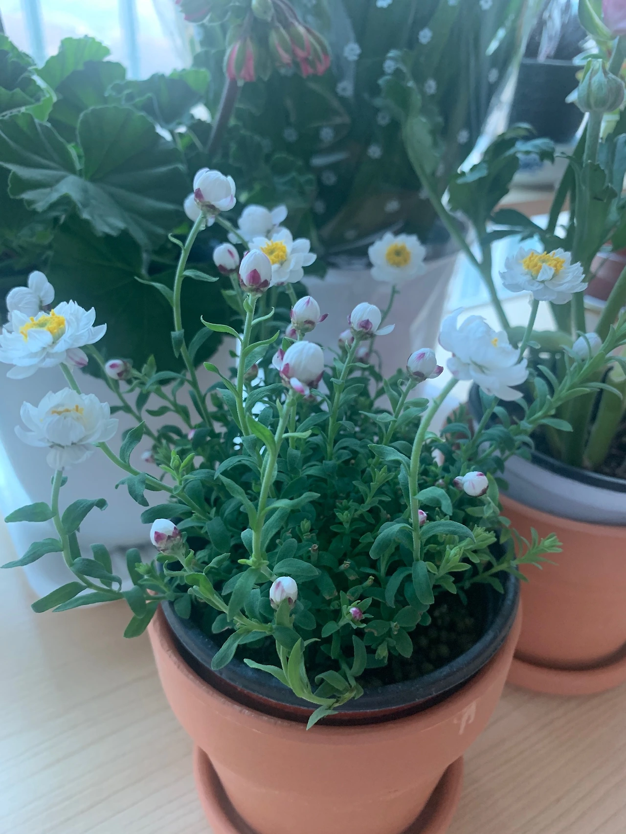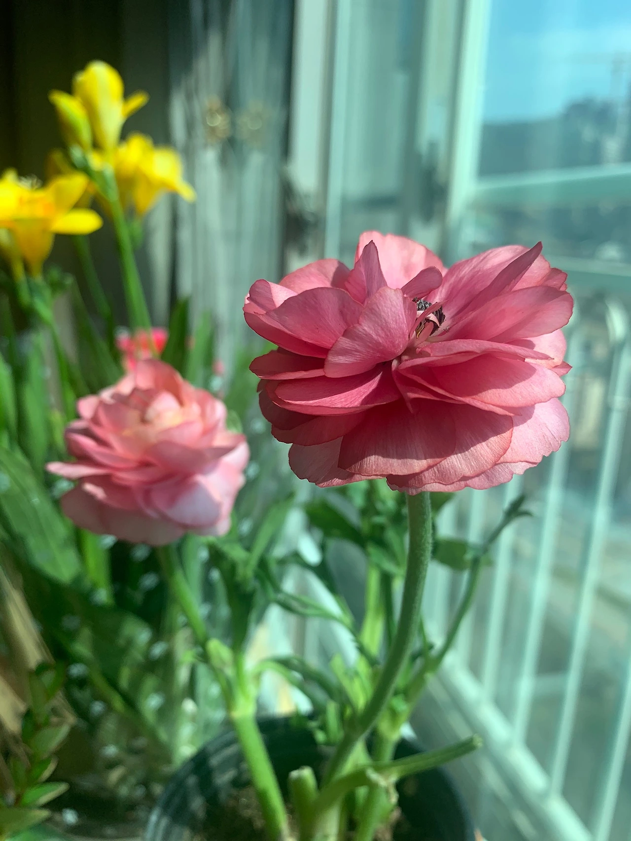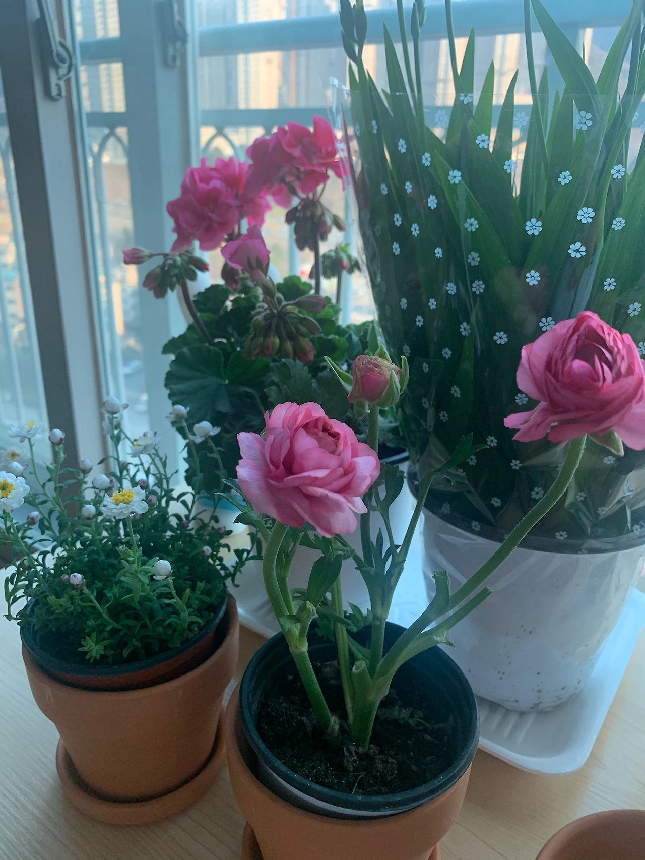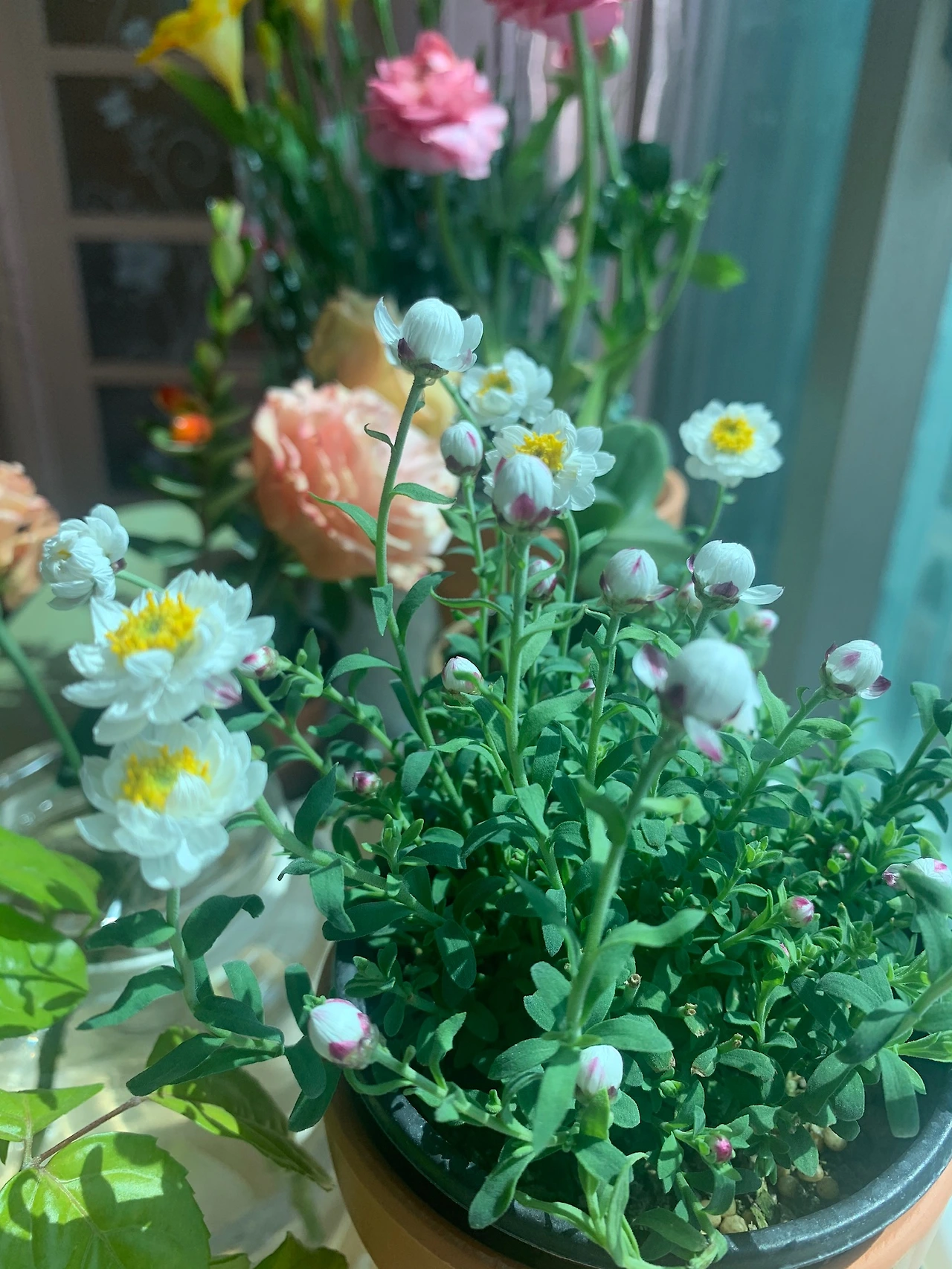 프리지아와 종이꽃을 사던 날 그냥 주신 시든 라넌큘러스가 예쁘게 꽃을 피워 잘 살 줄 알았다.