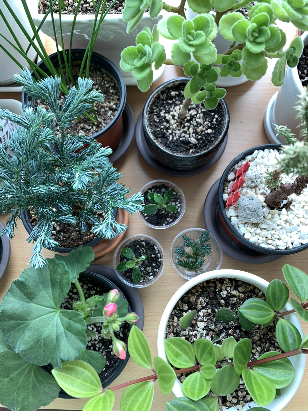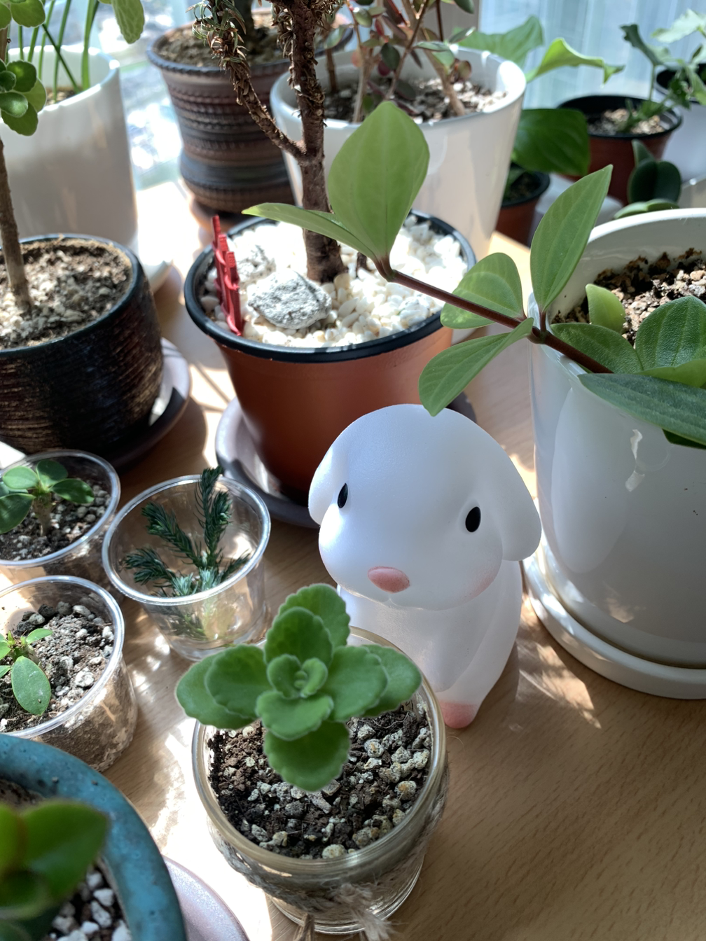 책상위 식물들을 하나씩 들여다보는 아침