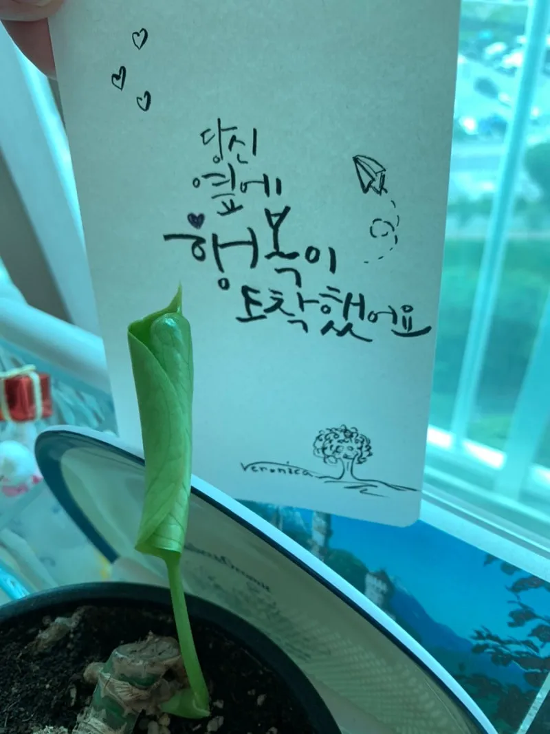 “뭐야! 잎이 원래 이렇게 컸어? 새로 산 거야?”