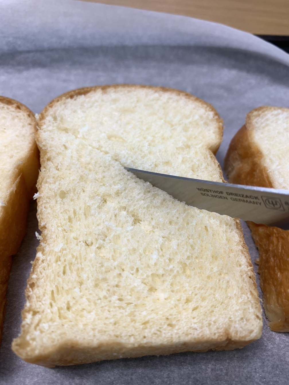2. 빵이 뚫리지 않도록 중간까지만 칼집을 넣는다. 격자 모양으로.