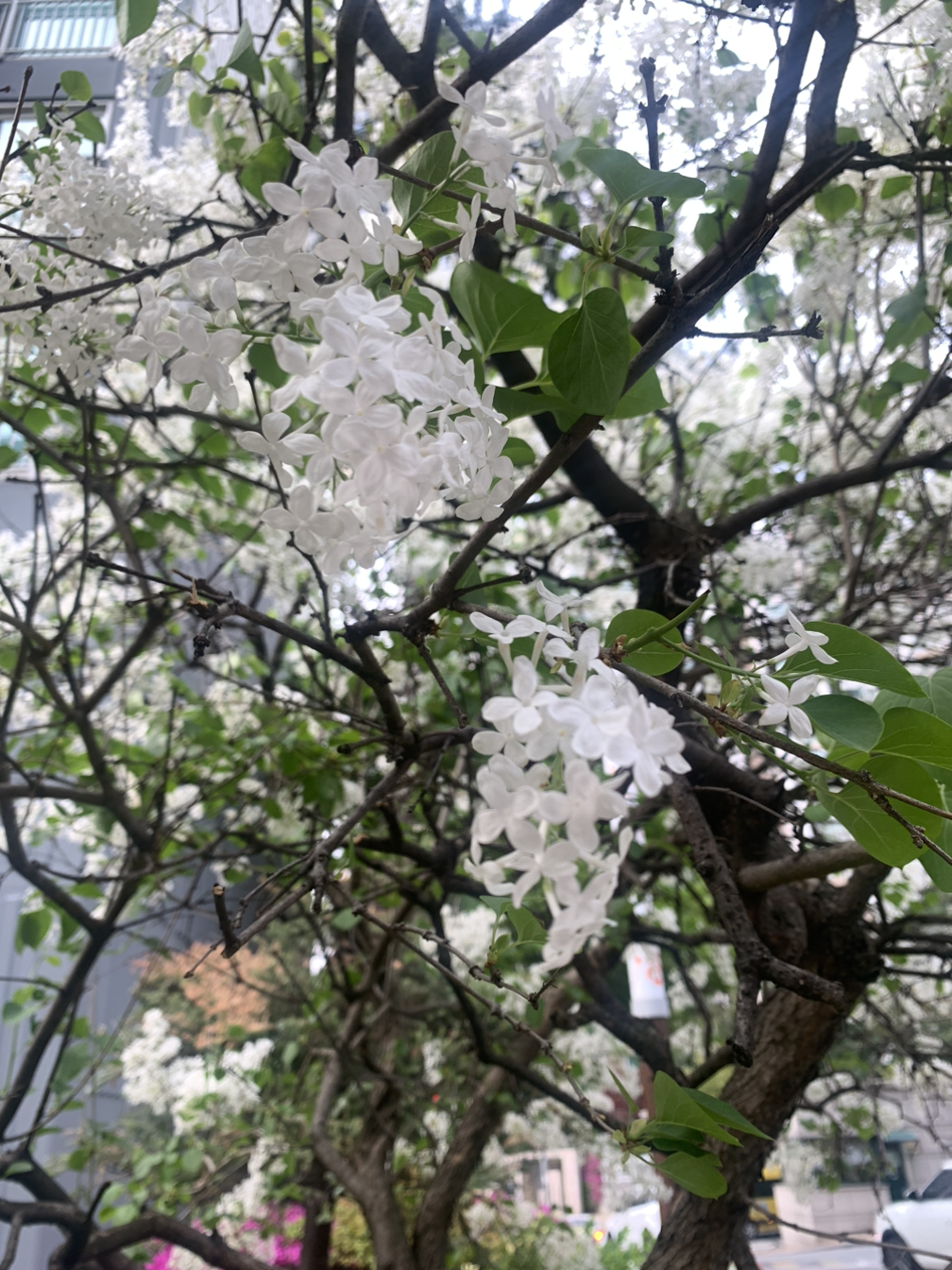 그 옆으론 연보라와 흰색의 라일락이 있었다.