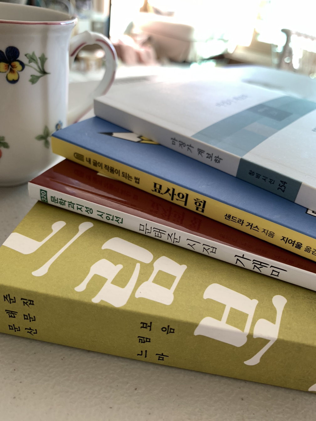 뒤죽박죽 장바구니 속에서 체크하며 책을 고른다. 주문할 때 의식하지 않았는데 문태준 작가의 책이 산문과 시집 두 개가 들어있었다.