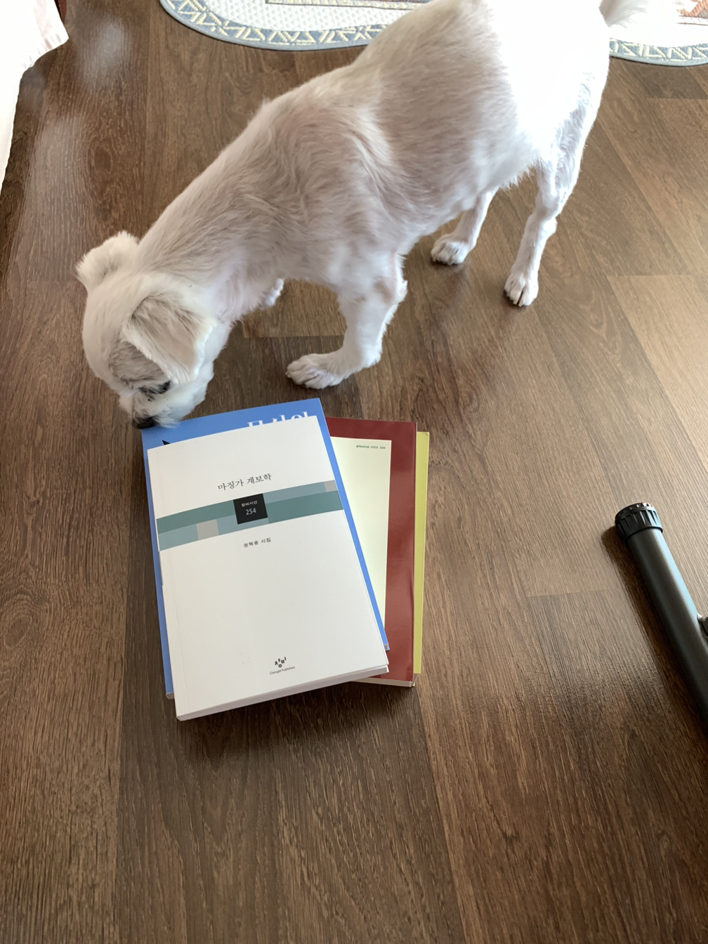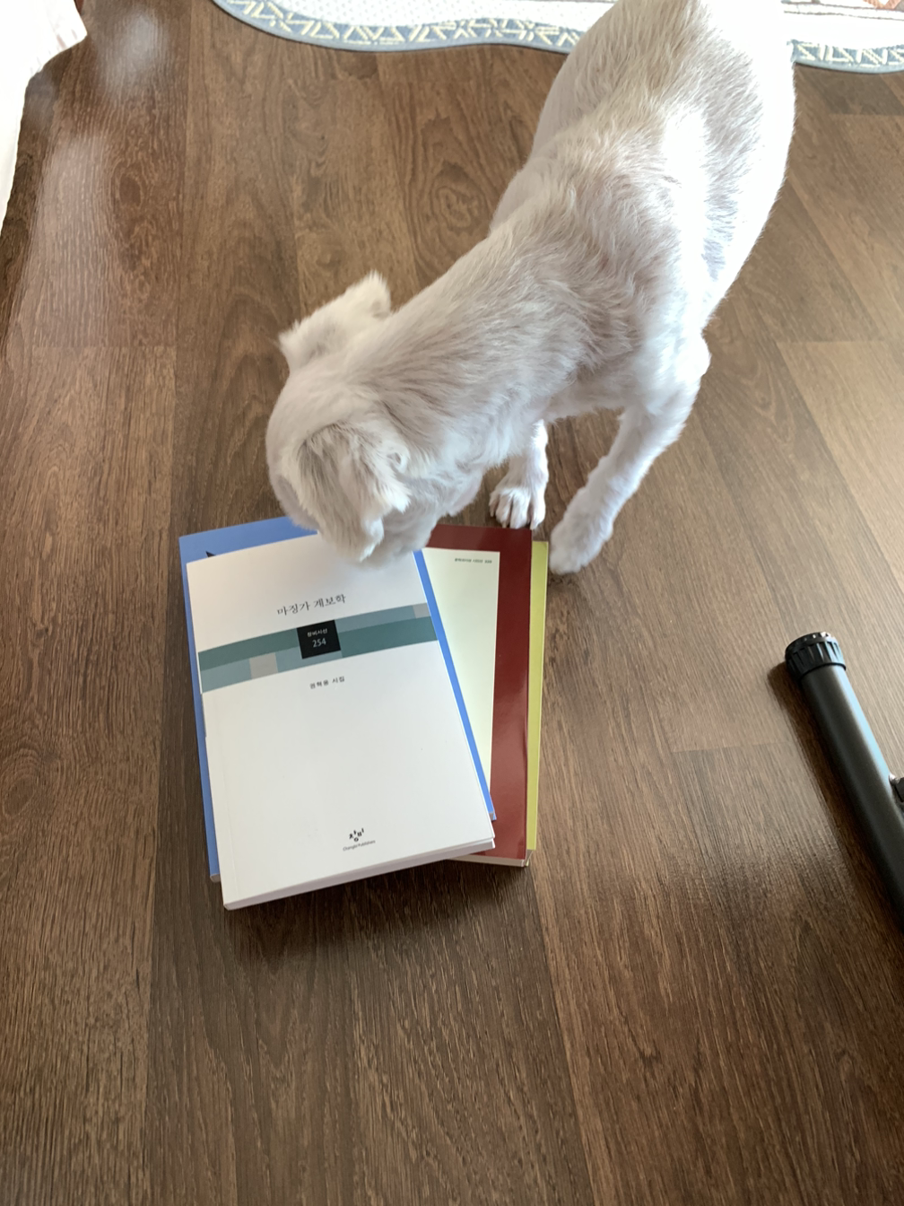 배송받은 책을 살펴보고 있는데 비누가 킁킁거리며 다가왔다. 궁금해한다.