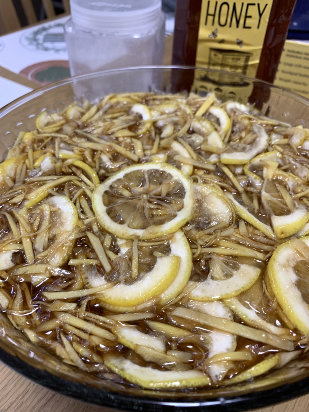 설탕 양의 1/2 정도를 꿀로 대신해도 된다. 완전히 설탕이 녹고 숙성이 잘 되면 당도가 잘 맞고, 레몬과 생강도 맛있어진다.
