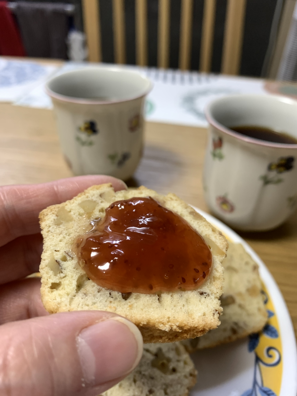 약간의 뻑뻑함은 딸기잼으로 보완해 주니 근사해졌다.