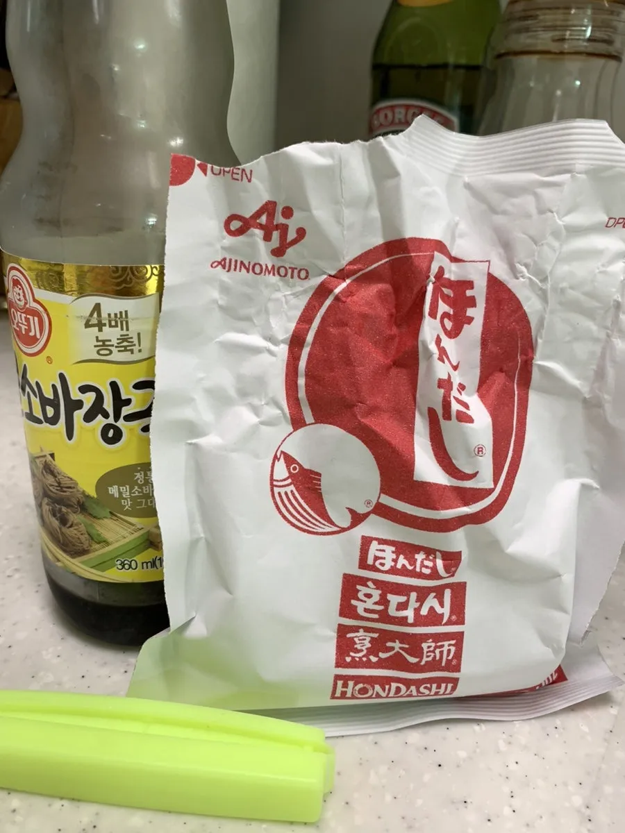 간장, 소금, 혼다시(또는 가다랑어 포)