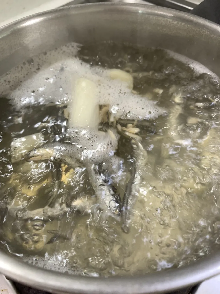 1, 육수 재료를 듬뿍 넣어 진한 국물울 내고 재료들은 건져낸다.