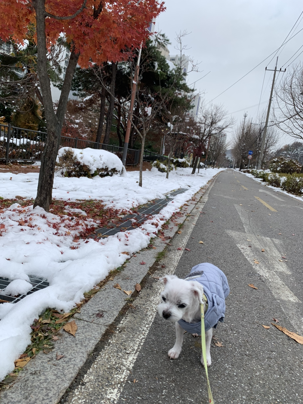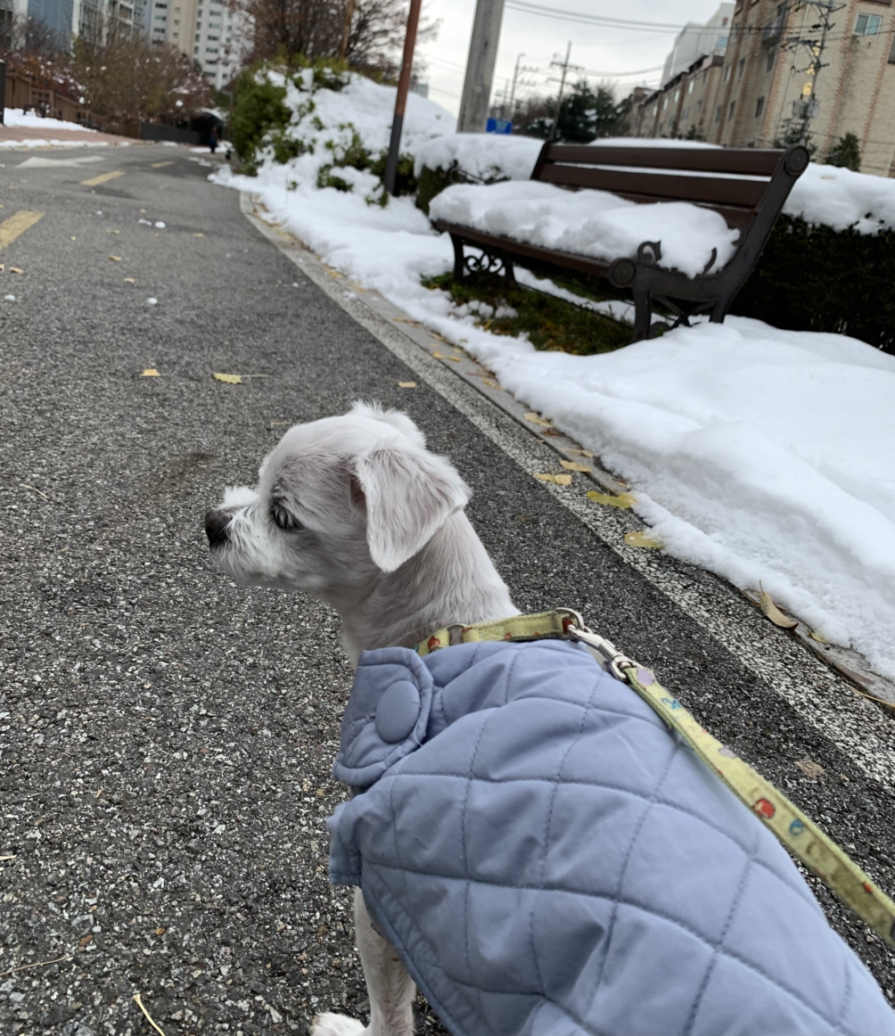 비누와 함께 열네 번째 첫눈을 느끼러 나간다.