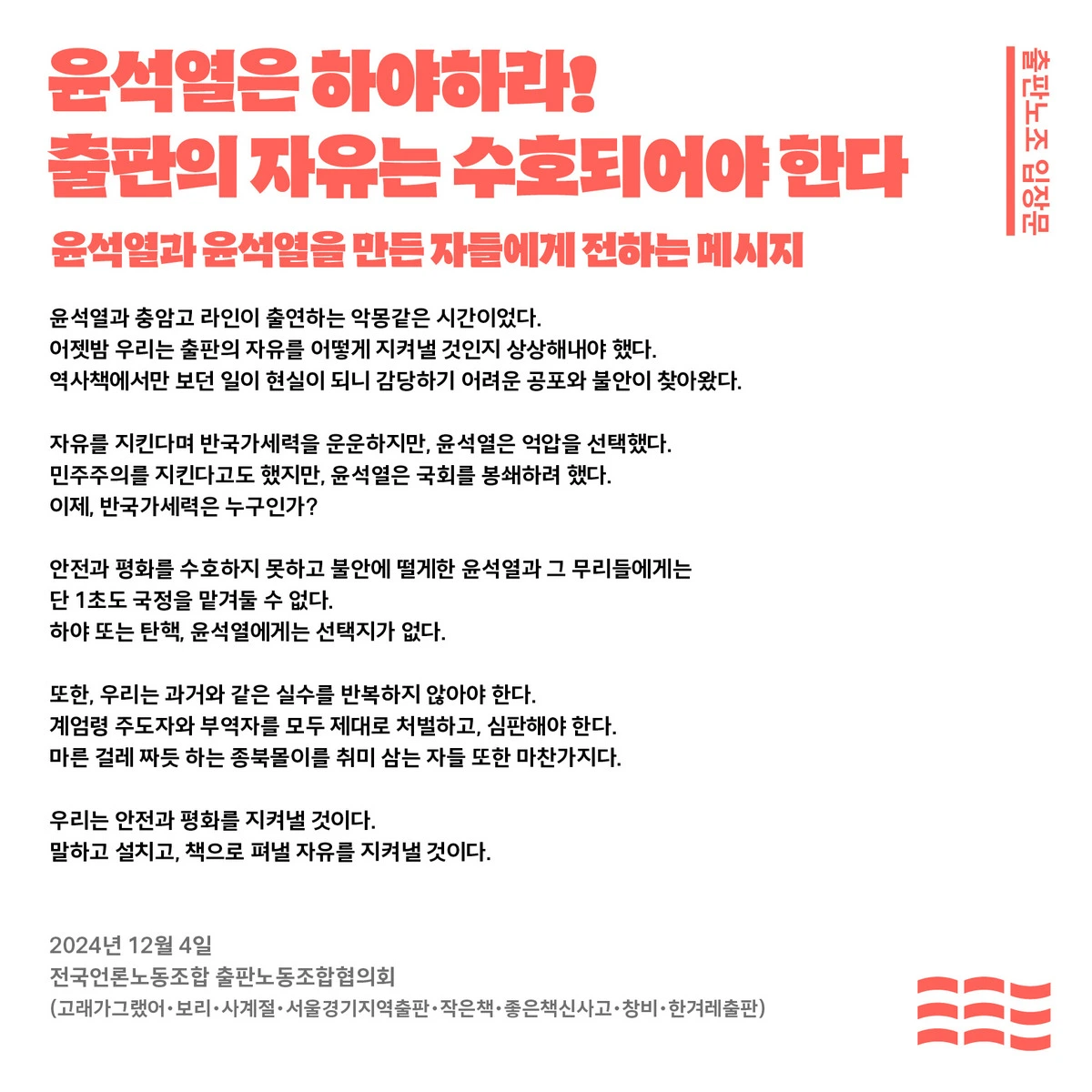 다음은 출판노조에서 나온 입장문입니다.