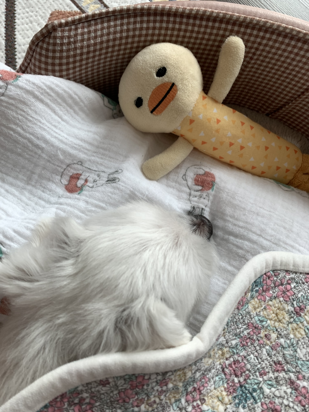 아직 체력이 완전하지 못해 부분 미용을 하기로 했고, 뜨끈하게 목욕을 하고 오니 한결 기분이 좋아 보인다.