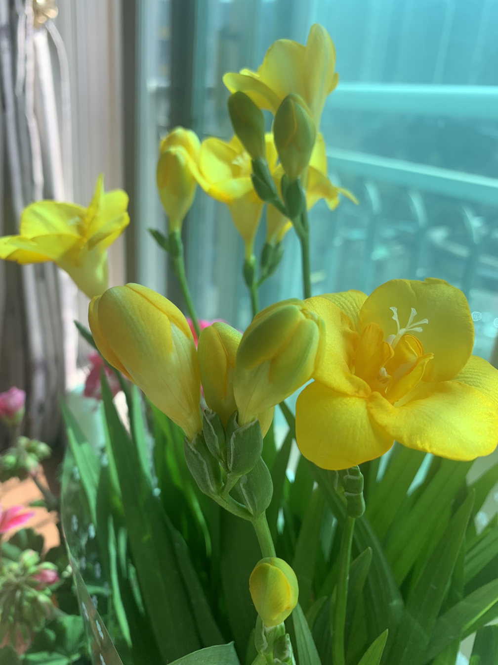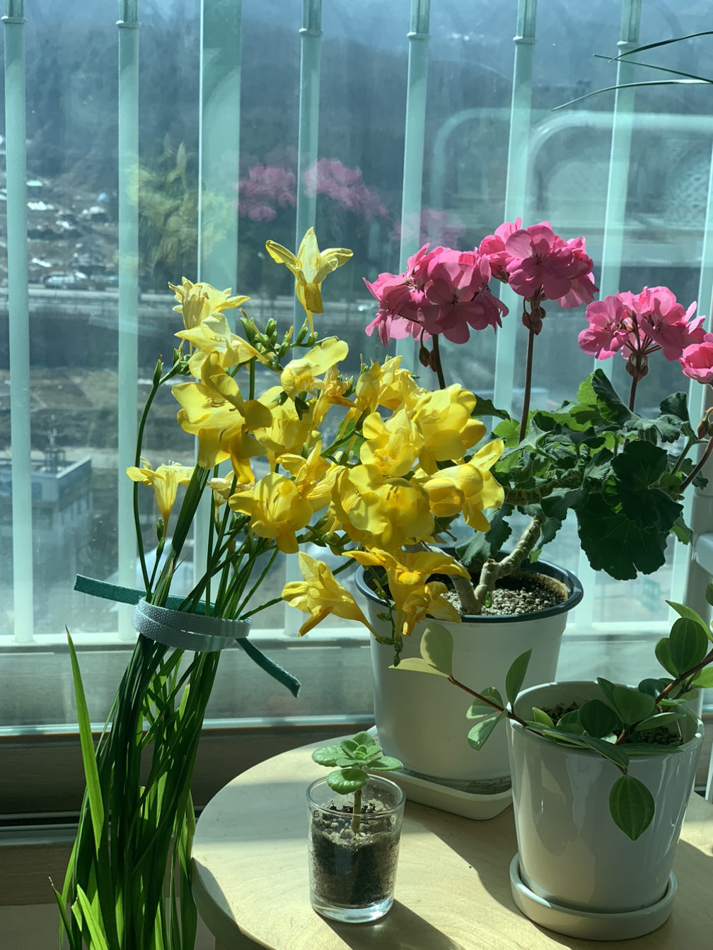 우리 집에 온 프리지아는 싱그러운 초록잎이 아담하면서도 숱이 무성하고 진한 노란색으로 아주 향기로웠다.