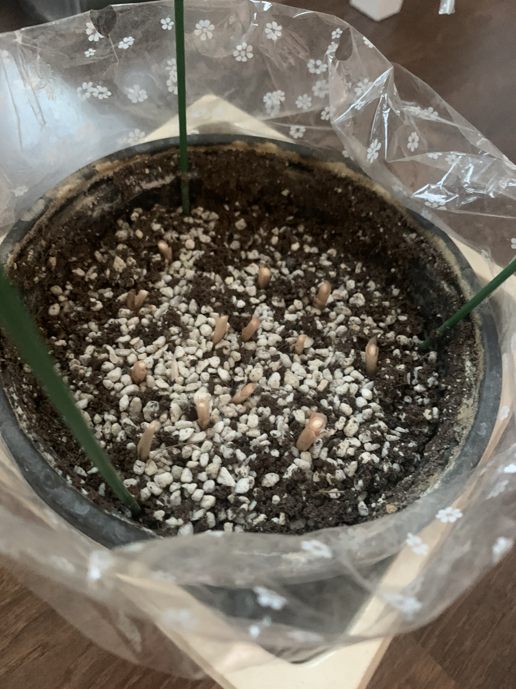 첫 물 주기 후 관리 : 10도 정도의 그늘에서 싹이 틀 때까지 둔다.