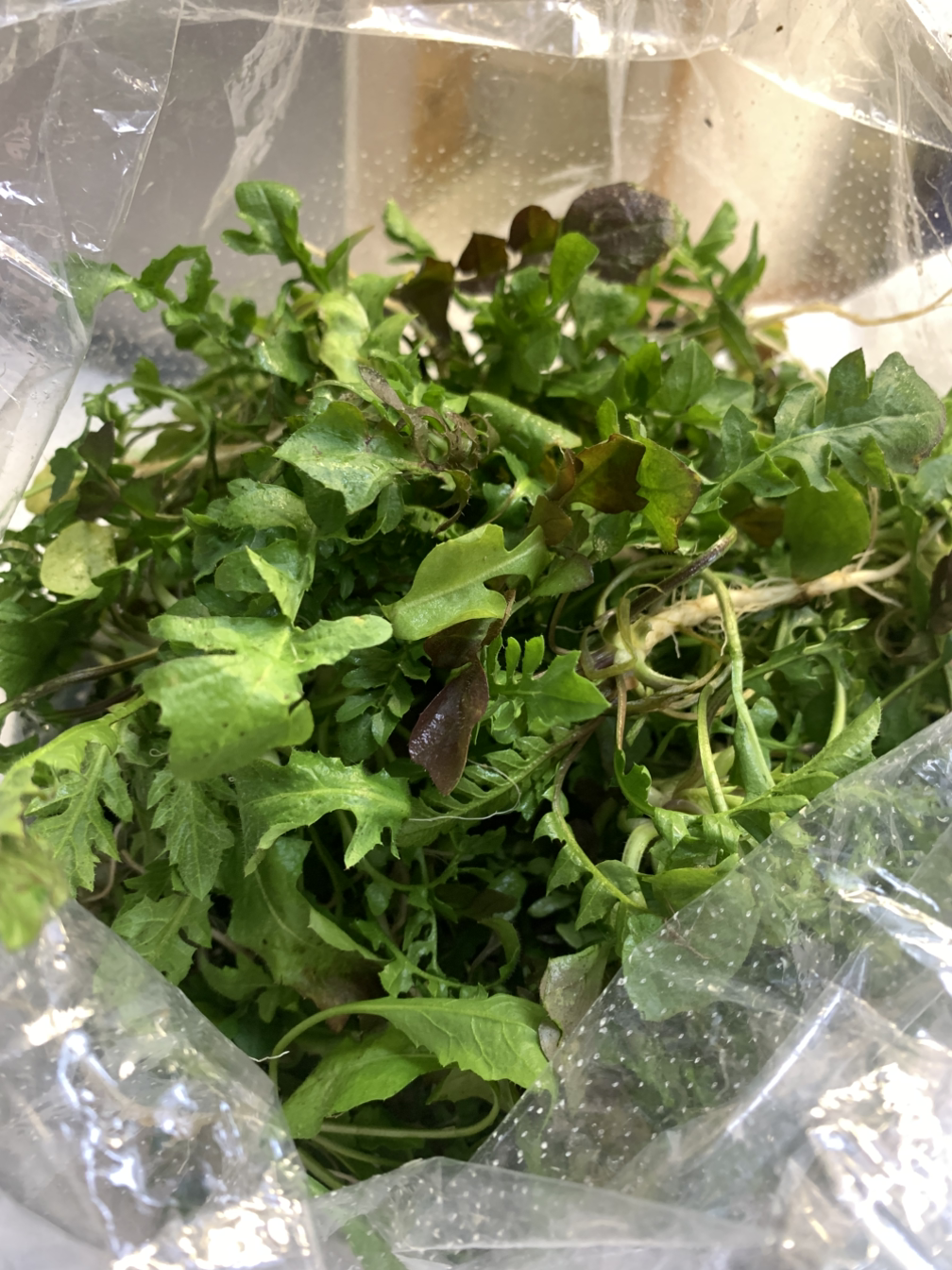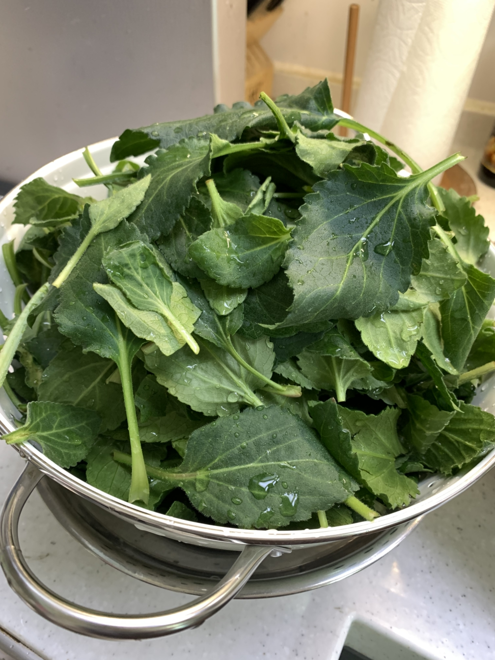 양이 좀 많아 고민을 하다가 연한 잎은 쌈에 넣어 먹어도 좋으니 카트에 넣는다. 기다란 줄기를 끊어 유부주머니의 입구를 꽁꽁 묶어 만들어 두었다가 어묵탕에 넣으면 고급스러운 맛이 난다.