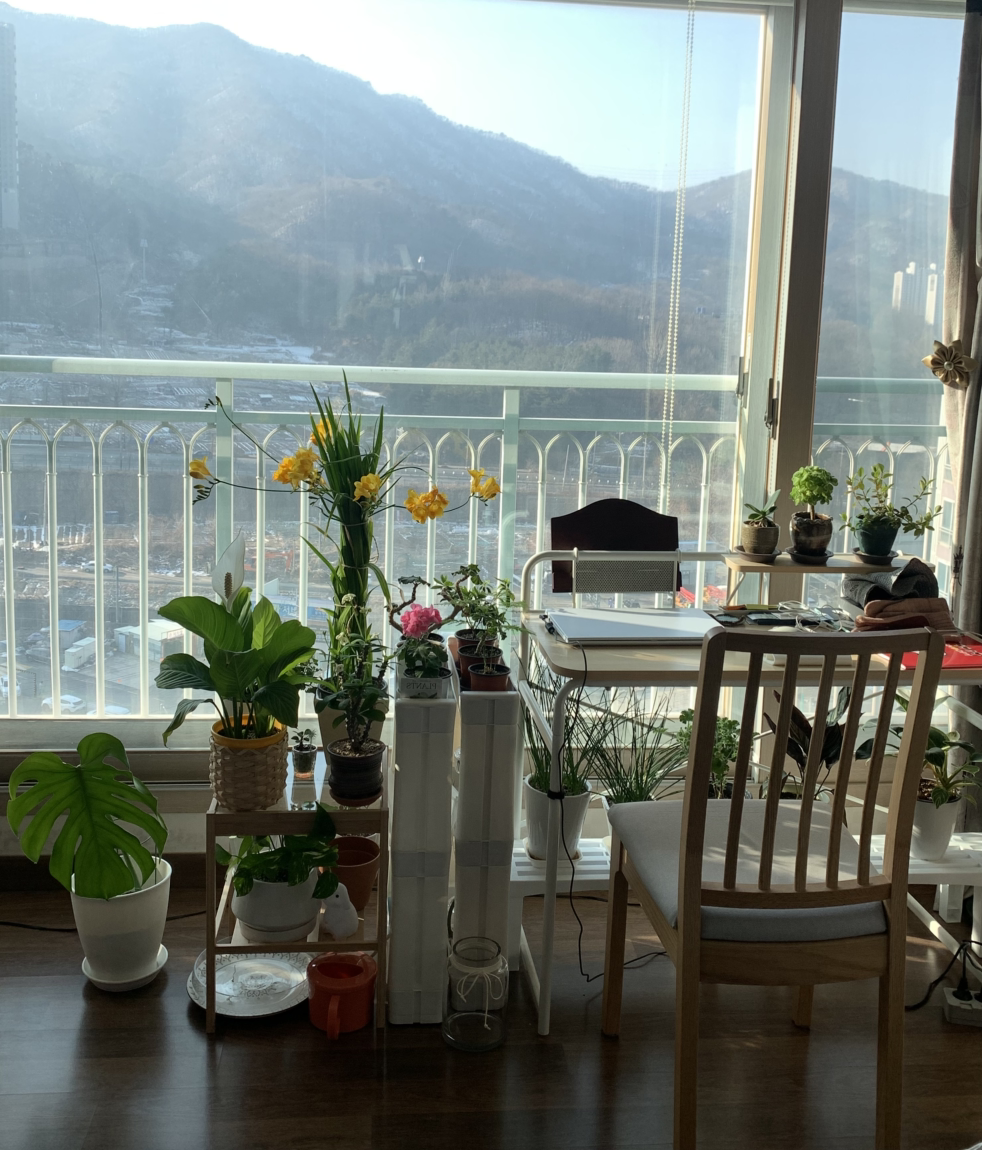 게다가 내 자릴 찾겠다고 식물들을 이리저리 자리를 배치하며 저 애를 내 발밑의 자리에 두었다.