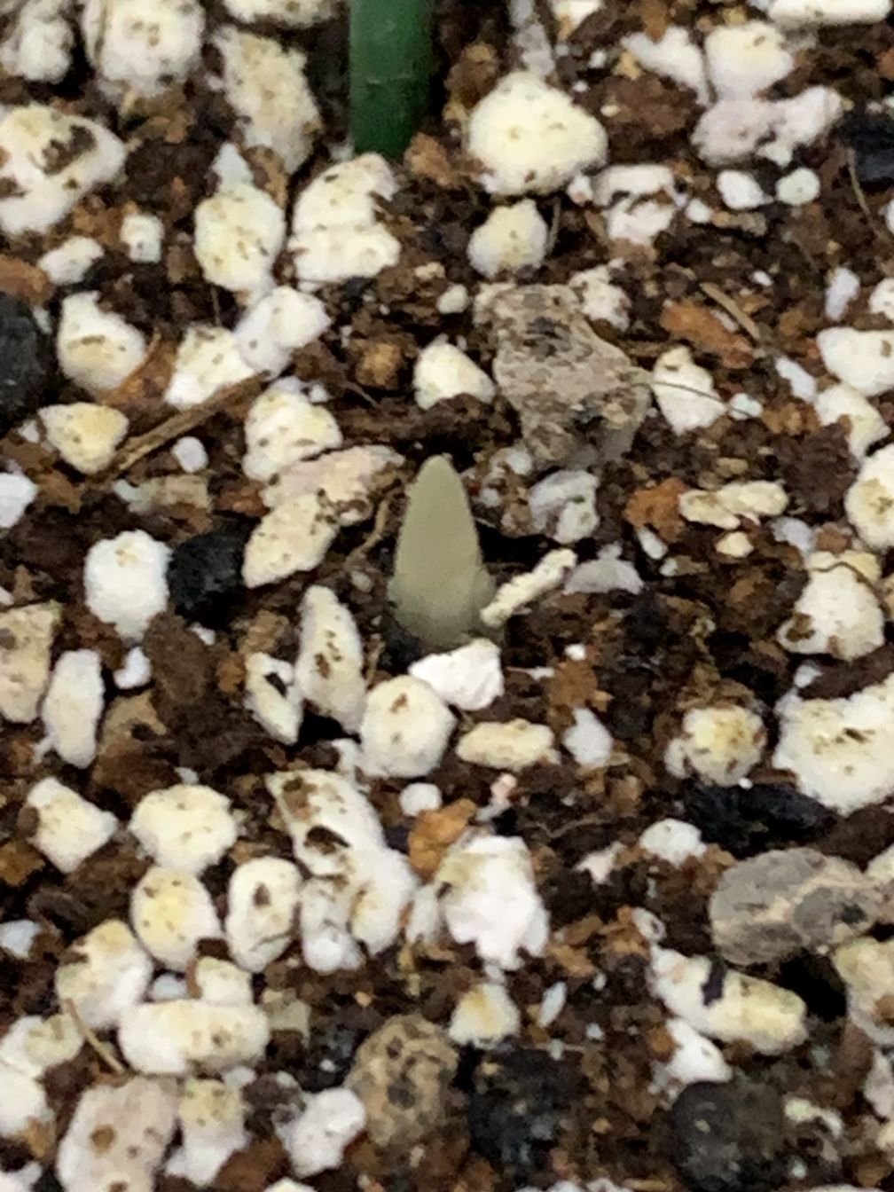 보통의 잎과는 다른 굵은 줄기에서 무언가 나오더니 발밑에 살며 우아한 꽃대를 올렸다,