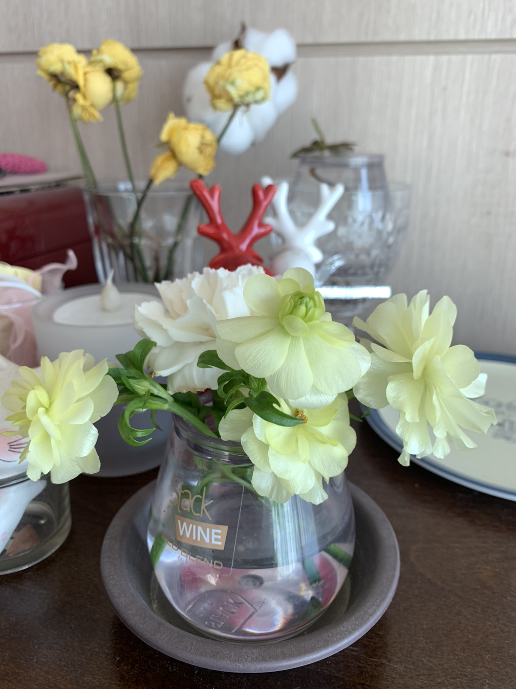 역시 배움이 없는 내 꽃꽂이 솜씨에 좌절하며 겨우 미완성 같은 꽃꽂이 작품이 나온다.