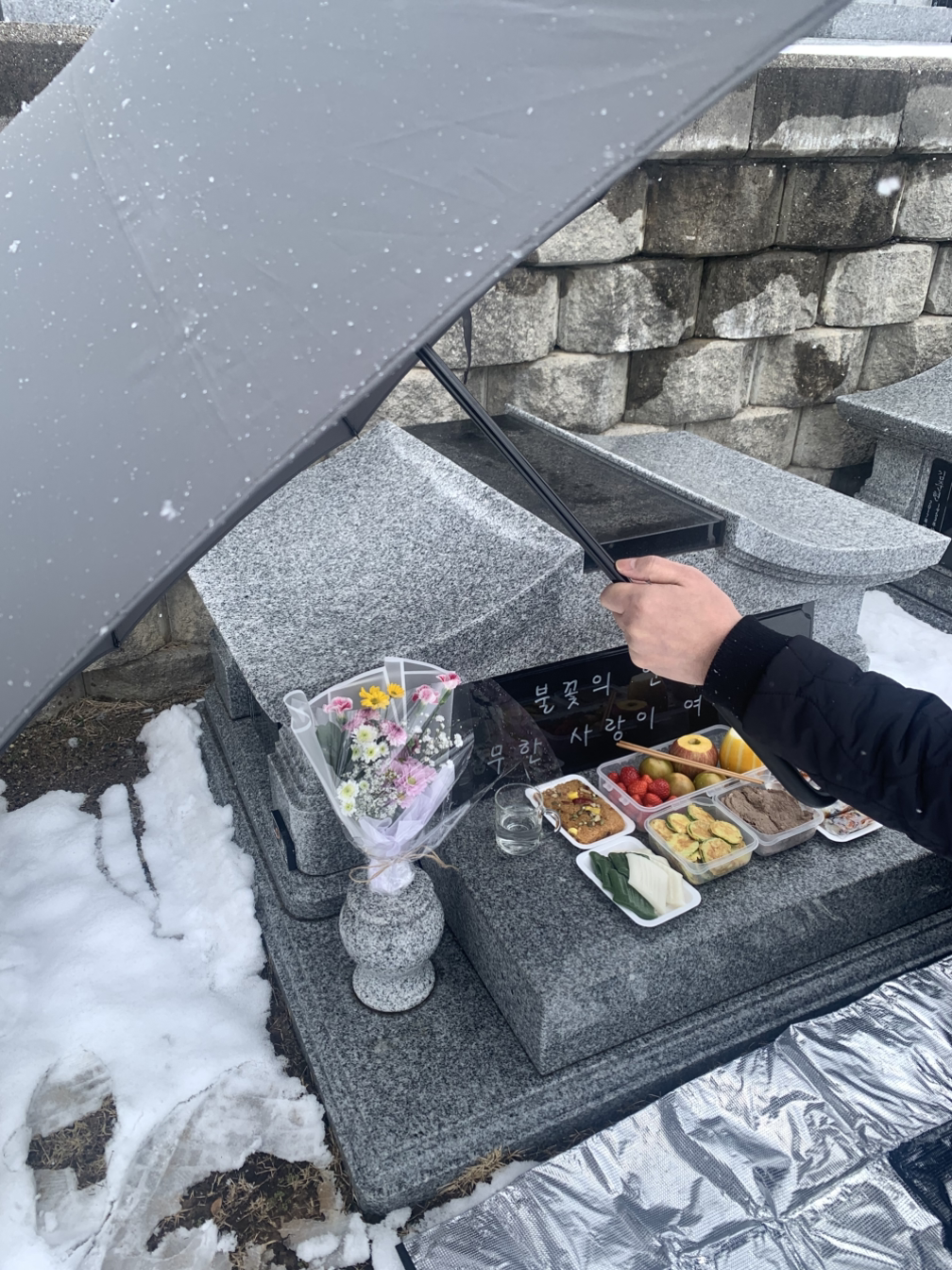 딸은 소박한 전을 부쳐 들고 엄마에게 간다.