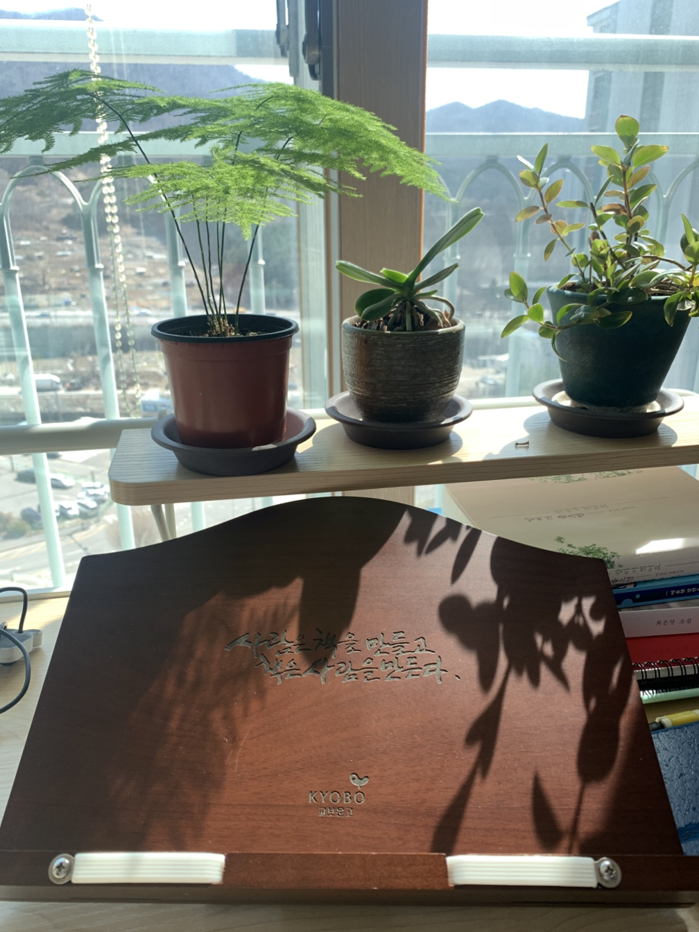 책 위로 드리워지는 연둣빛 잎의 그림자가 살랑거리며 외로운 마음을 달래준다.