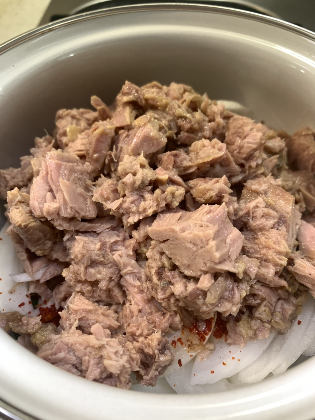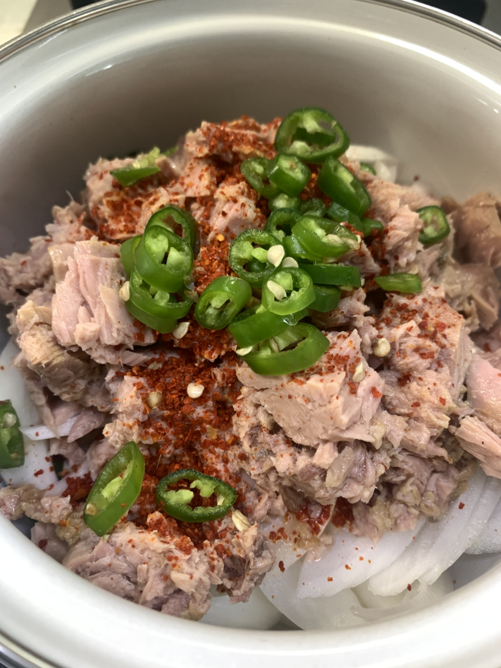 요즘 햇양파가 한창이라 양파를 양껏 넣고 보니 이건 참치찜이 아니고 양파찜이라고 하는 게 맞을 것 같기도 하다.