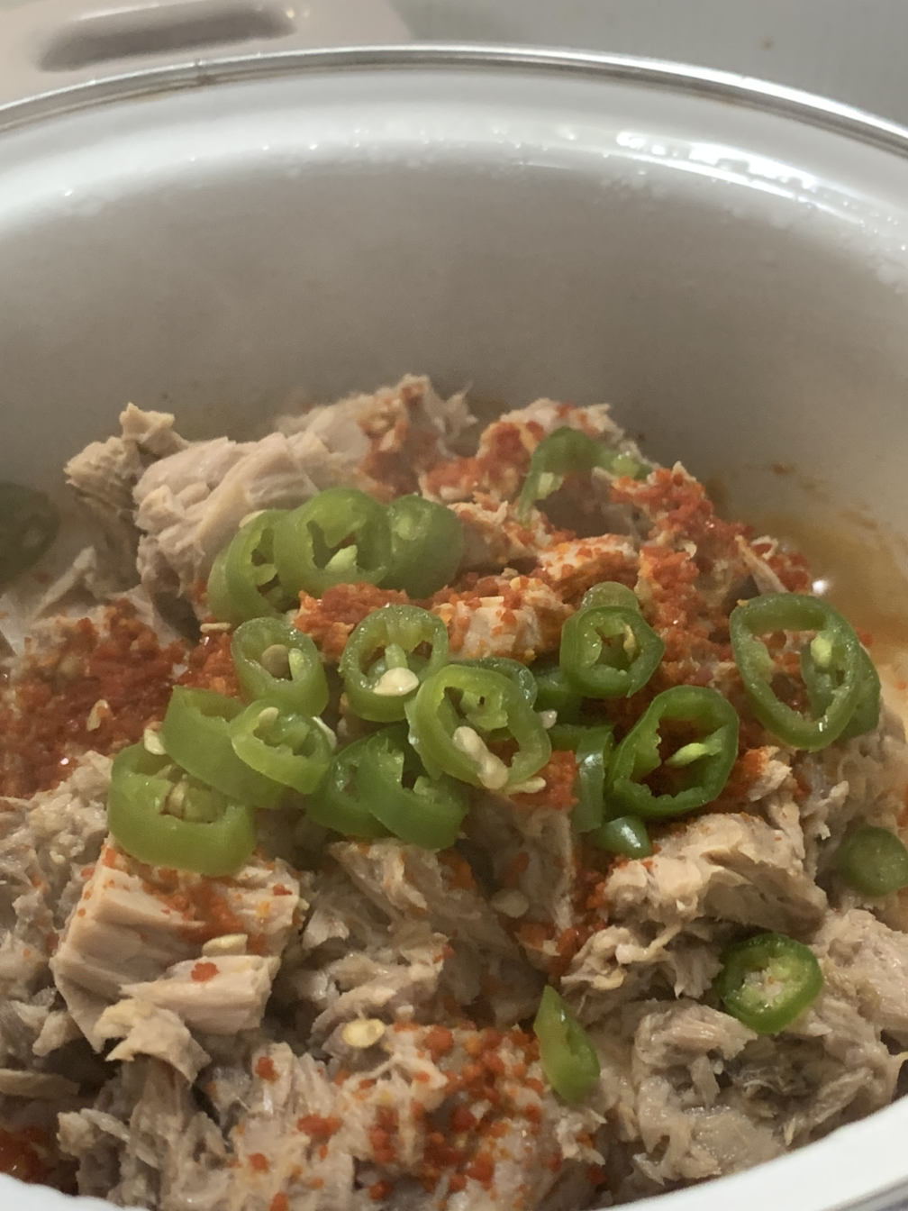 캔 참치 2개, 큼직한 양파 1개, 청양고추 2개, 고춧가루 약간, 소금도 약간