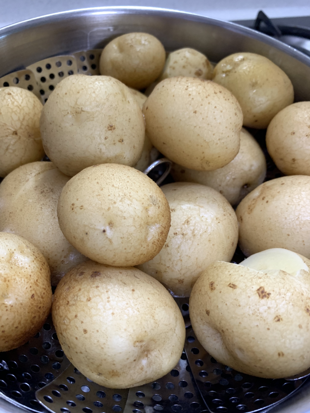돌아오자마자 싱싱한 흙향이 사라지기 전에 감자를 찐다.