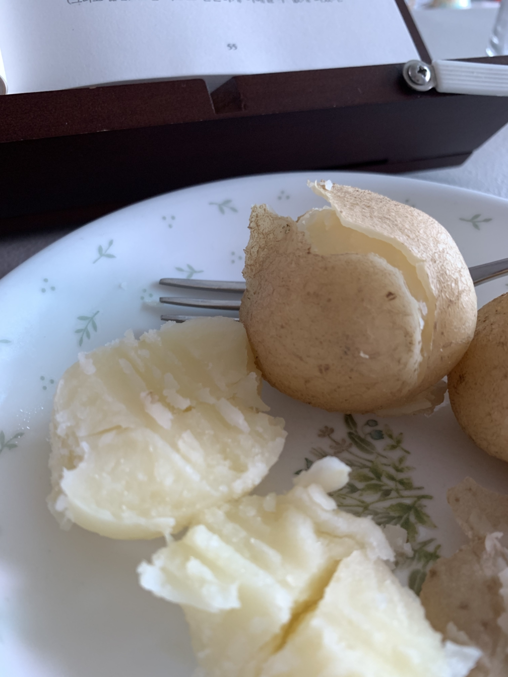 제일 작은 감자를 꺼내 껍질을 벗기고 호호 불어 뜨거운 감자를 입안에 넣으니 자연의 단맛이 느껴진다.