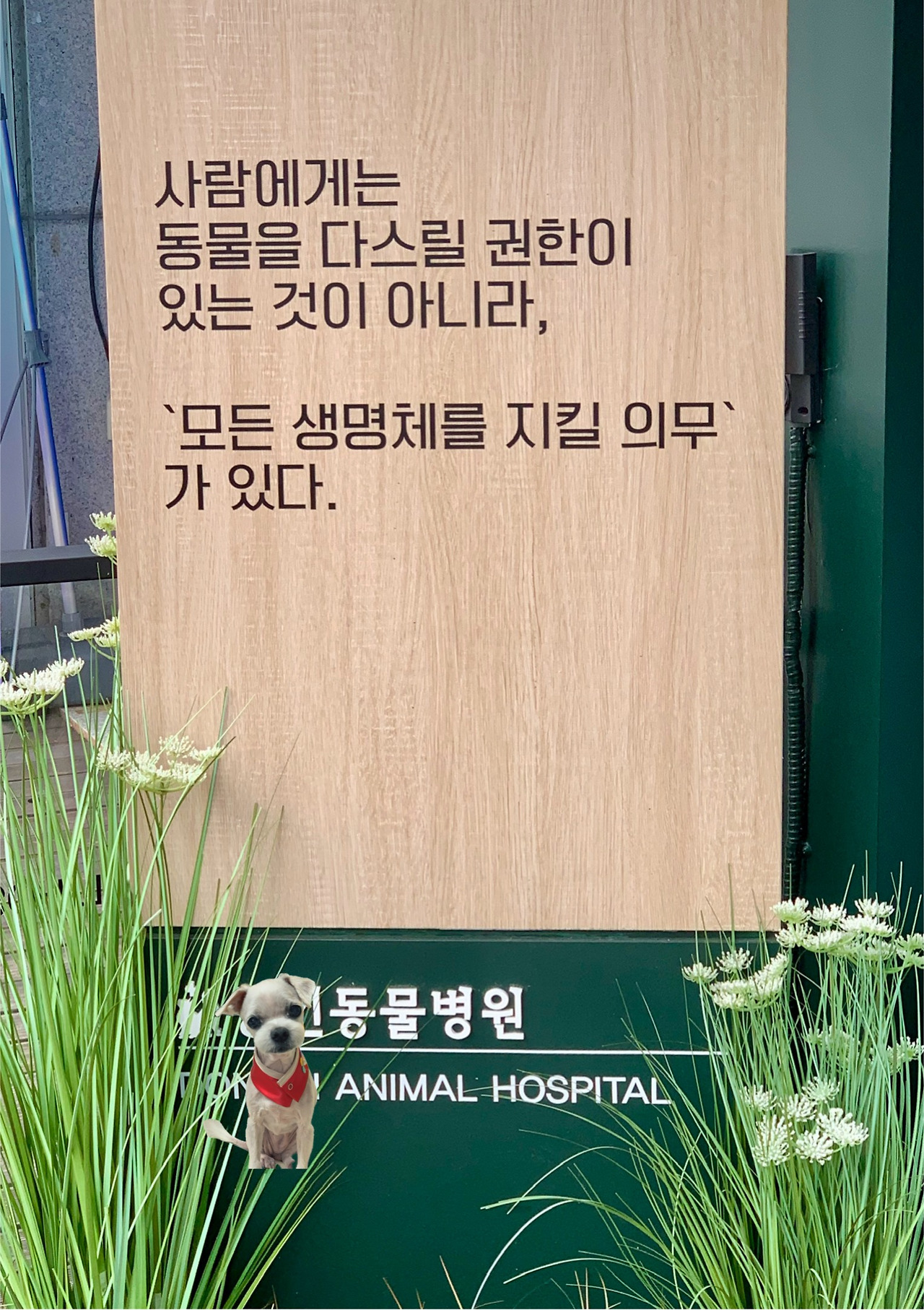 열다섯 살 강아지 비누가 병원을 갈 때면 언제나 급하고 마음의 여유가 없었다. 밀고 들어가는 문 옆을 살펴볼 정신도 없었다.