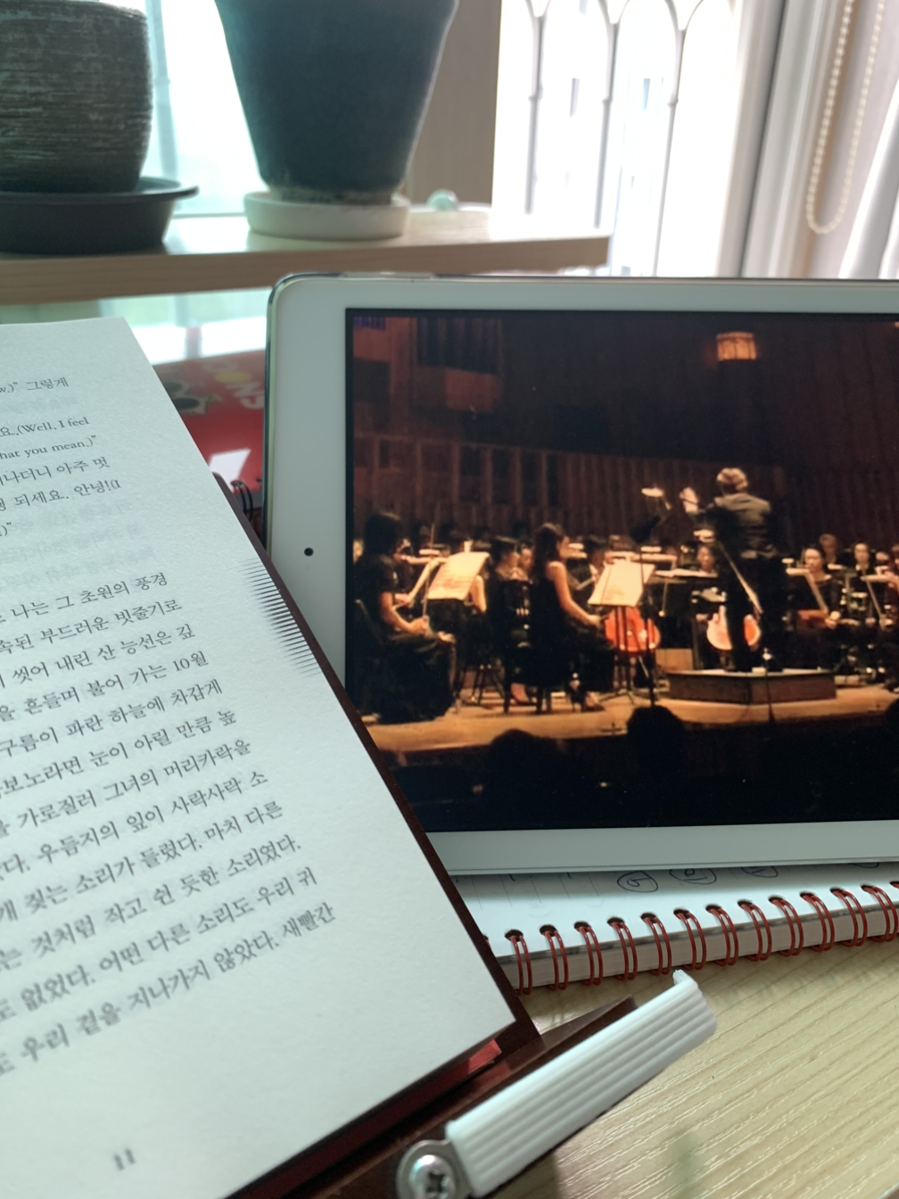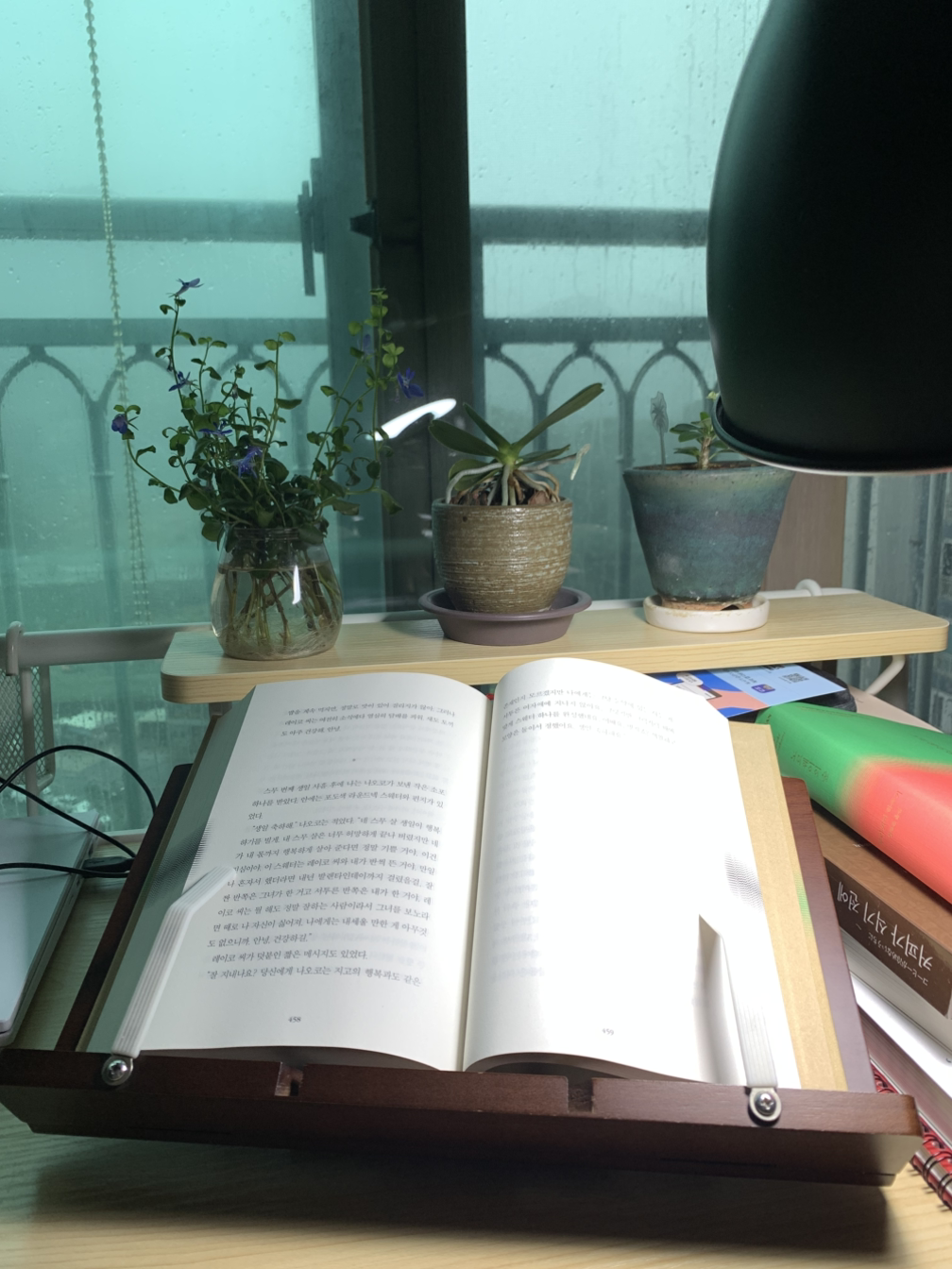 비가 소강상태에 들어간 덕분에 모처럼 창문을 활짝 여니 시원하다. 조용한 창밖을 한참 지켜보다가 빨래를 세탁기에 넣고, 커피를 내려 독서대 앞에 앉는다. 전날밤 독서를 끝낸 <흰>을 책꽂이에 넣고, 바로 책을 꺼내어 독서대 위에 얹어두었다.
