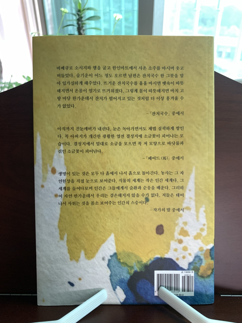독서의 묘미는 또 있다. 흙과 바다와 동물에 대해서 답답함 없이 정확한 묘사를 하면서도 아름답고 서정적으로 표현되며 어우러져 있었다. 독일 마장의 말과 교감을 하기도 하고, 행복과 아픔을 간직한 동산을 생생하게 떠올리게도 된다.