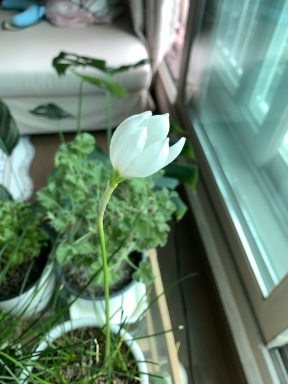 귀하디 귀한 한송이가 올라와 하얀 봉오리가 툭하며 터져 활짝 피어 내게 인사를 한다.