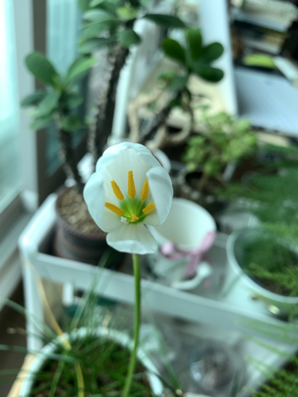 반가운 흰꽃나도 샤프란 꽃대가 올라와 있었다.