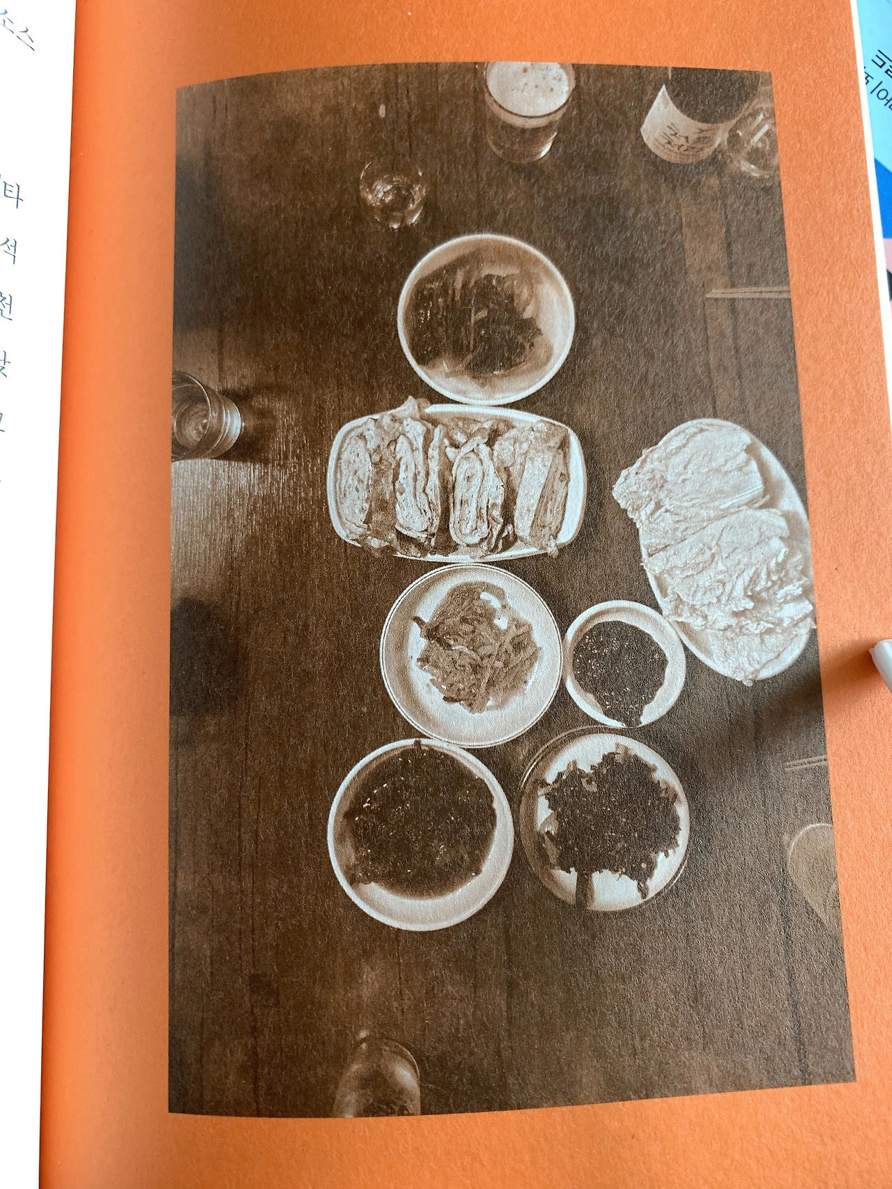 오렌지색의 바탕에 흑백의 음식 사진이 실려있다. 무슨 음식인가 가만히 들여다보지만 맛있겠다는 생각이 들지 않았다. 맛있기는커녕 호기심이 전혀 생기지 않는다. 일반적으로 음식 이야기라면 사진은 화려하고 맛깔스러워 침이 꼴깍 넘어가고, 글을 쓴 셰프의 식당으로 한 번쯤 가봐야겠다고 생각될 만큼 군침이 뚝뚝 떨어져야 하는 것이 인지상정 아닌가?