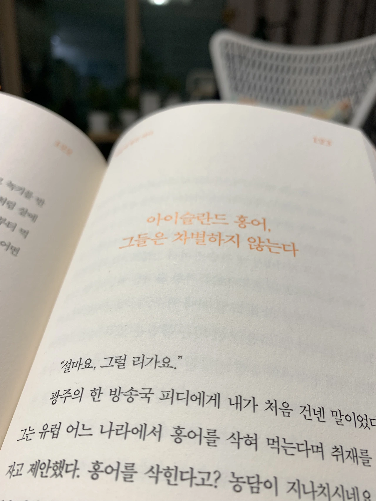 예전 어느 방송 프로그램에서 아이슬란드인에게 “음식으로 사람을 차별할 수 있는가” 하는 물음을 던졌다. 홍어를 지역 차별의 끔찍한 대명사로 쓰는 한국 현실에 대한 다른 시선을 얻고자 했던 것 같다. 그들은 아주 뛰어난 통역이 있는데도 질문의 요지를 잘 이해하지 못했다. 왜 음식으로 사람을 차별하고 구분하죠? 그게 뭐예요? 당연한 대답이었다. 오히려 그 반문이 좋은 답이 되었다. 물론 내 가슴 한편은 더 무거워졌지만. 우리 포털의 댓글창에서 여전히 몰이해와 차별의 언어로 홍어라는 낱말이 돌아다닌다. 한 번도 그 음식을 먹어보지 않은 자들의 언어로.