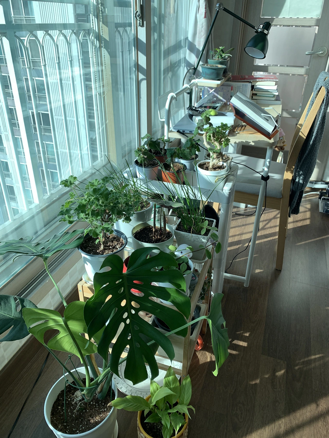 실내라는 불가항력적인 환경에 놓인 식물들에게 나는 아주 조금의 도움을 주었을 뿐인데 제 할 일을 저렇게 열심히 하는 식물들을 보고 있으면 고마운 생각과 함께 희망적이고 나도 무언가 할 수 있을 거라는 생각이 든다.